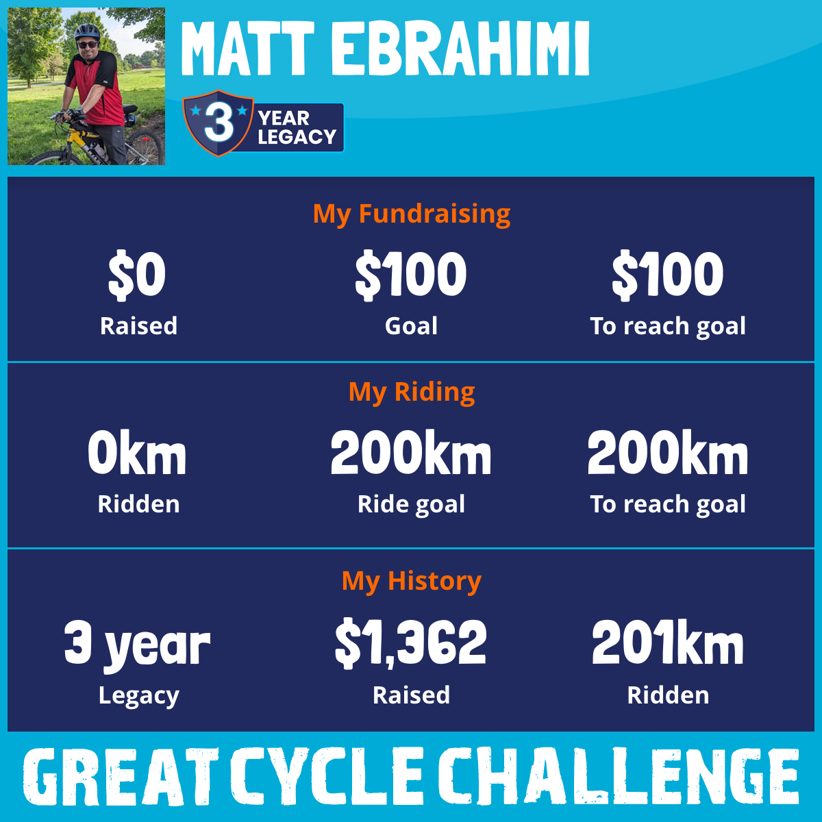 201 km Ridden$1,362 Raised2023
