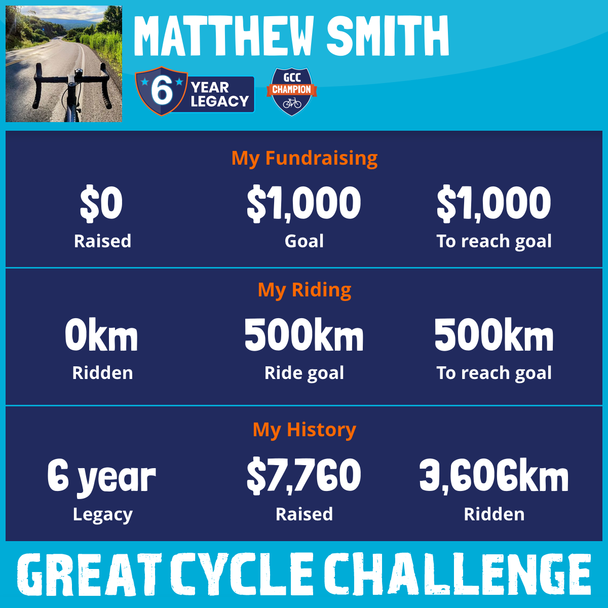 I am riding 500 km in memory of Selby Smith. Please sponsor me and support my challenge to fight kids' cancer and save little lives.