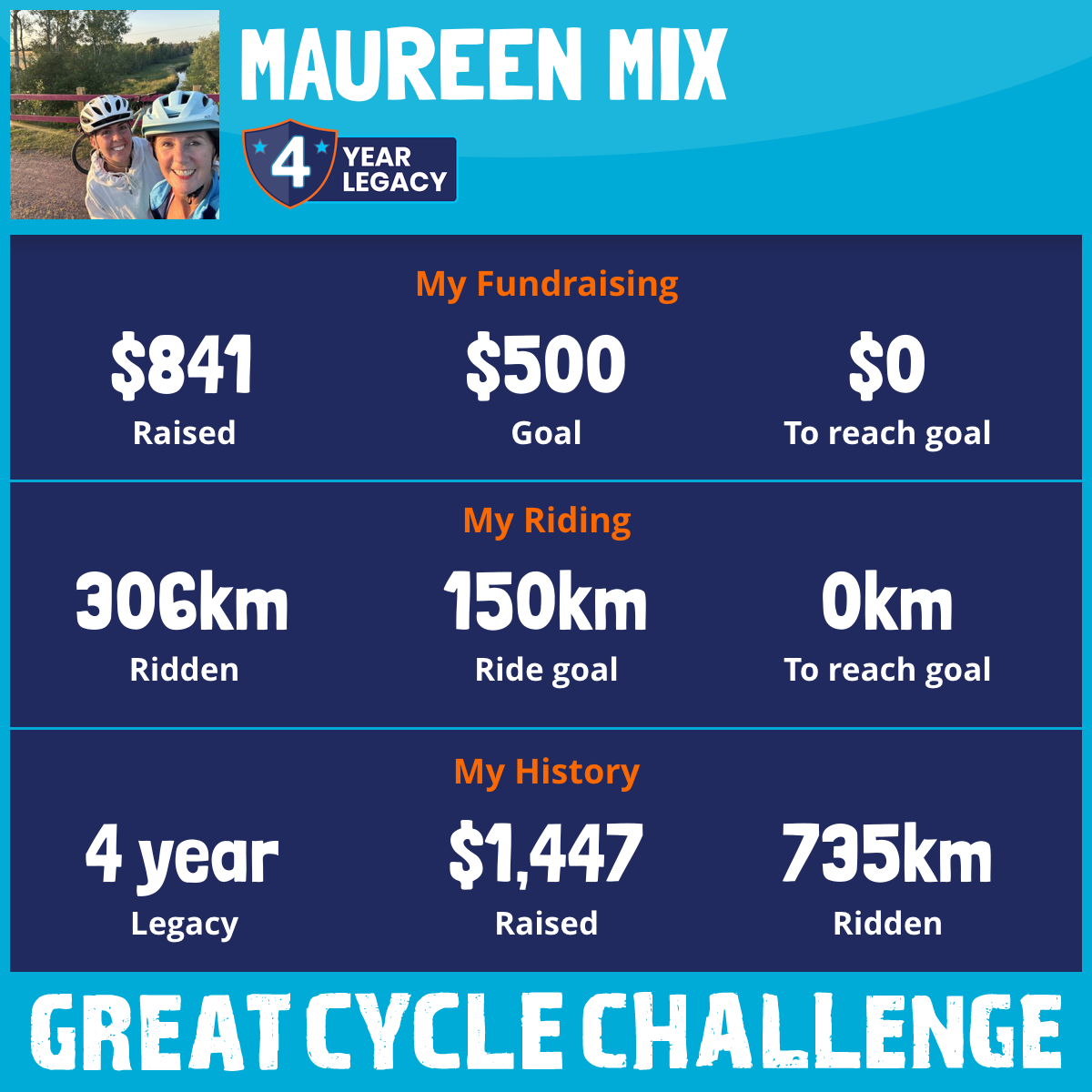 306 km Ridden$841 Raised2025