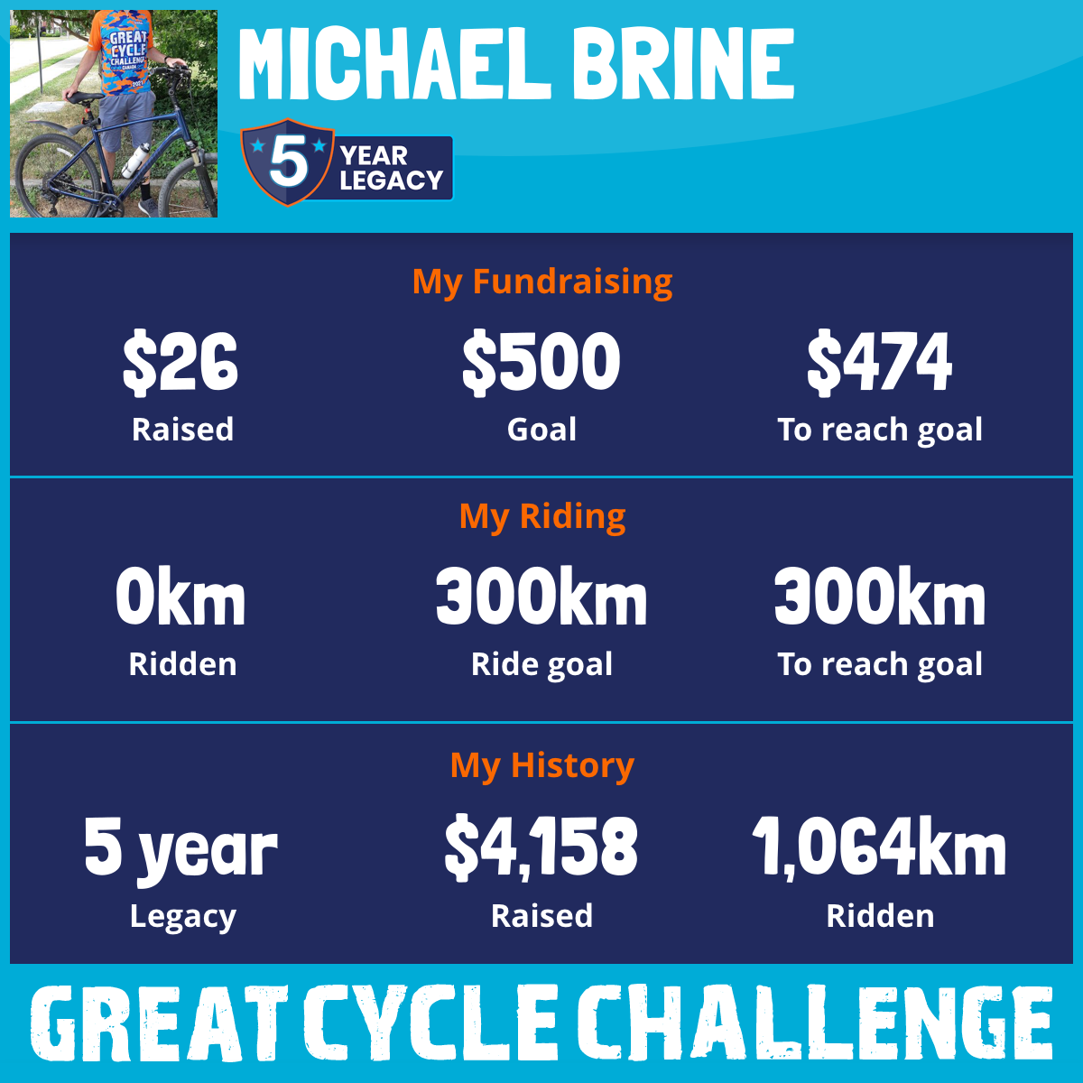 302 km Ridden$1,505 Raised2023