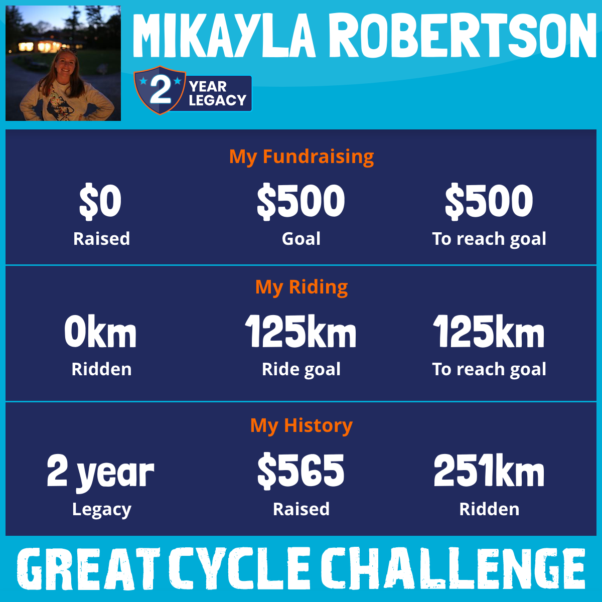 251 km Ridden$565 Raised2020