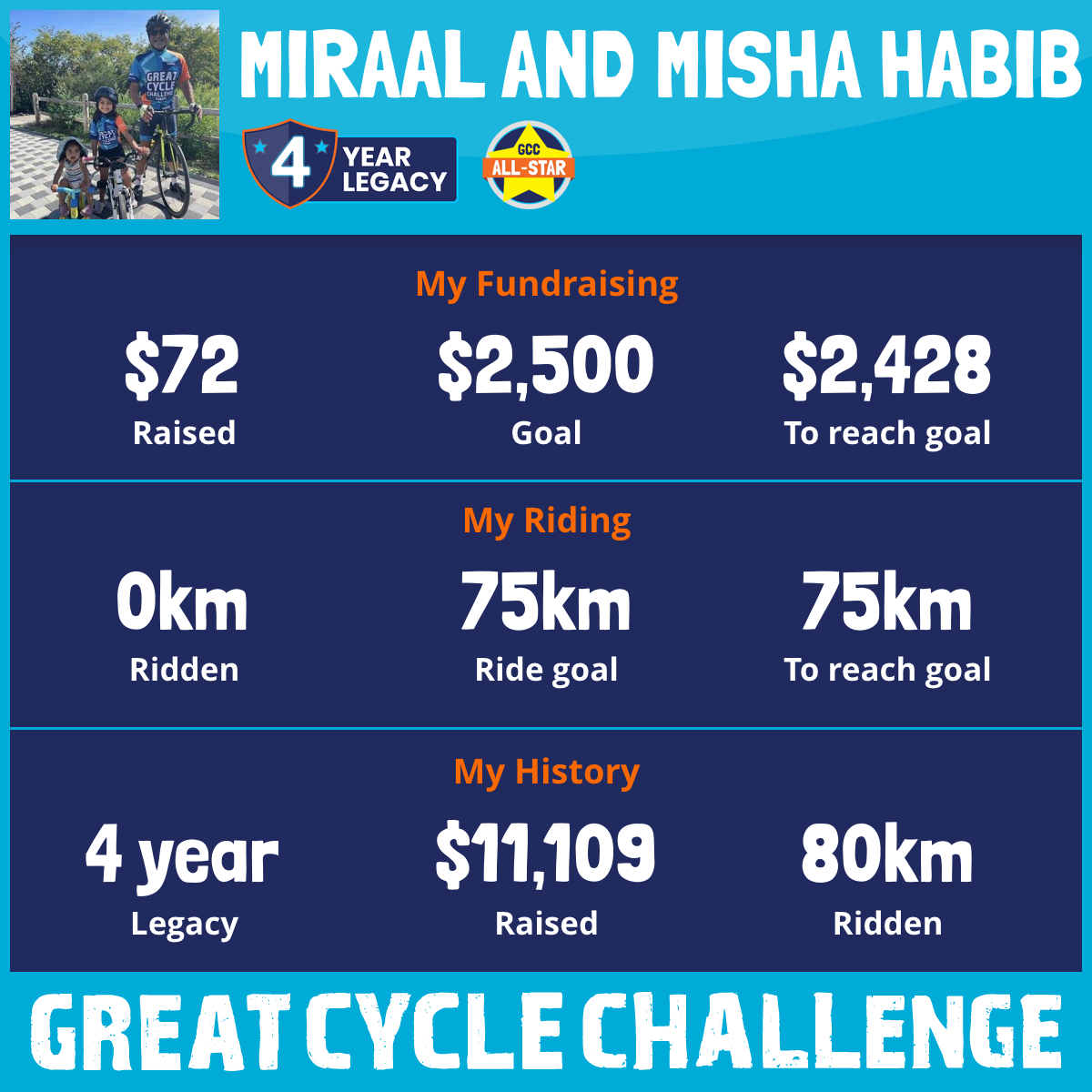 This summer, with my sister Misha, my Nana, and my family and friends , I am taking part in the Great Cycle Challenge to fight kids' cancer!