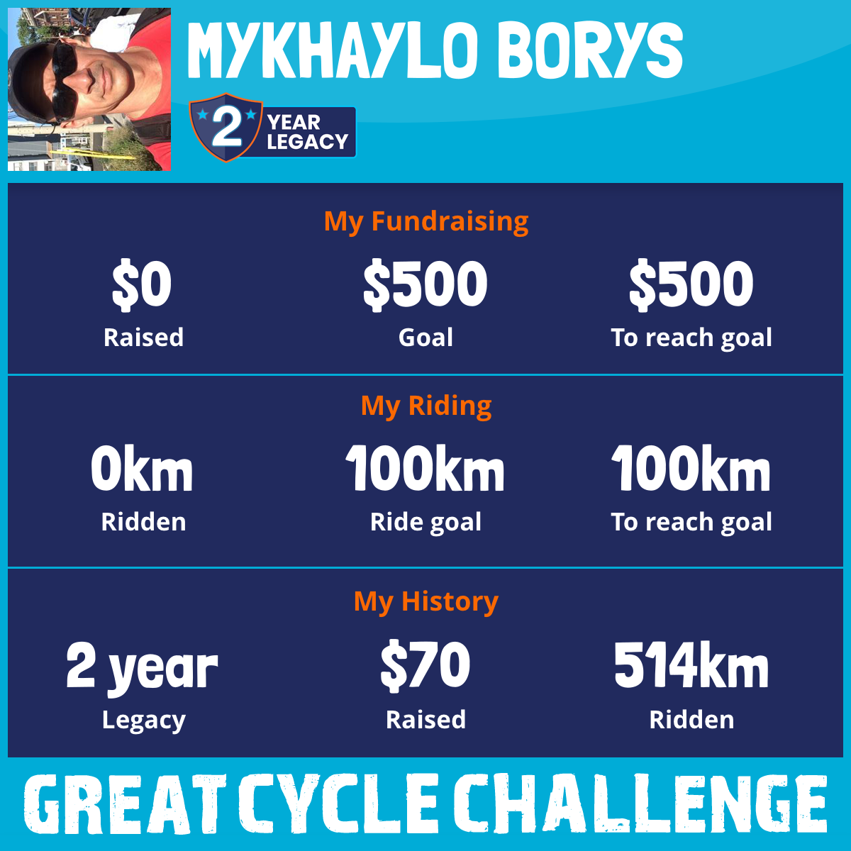 514 km Ridden$70 Raised2020
