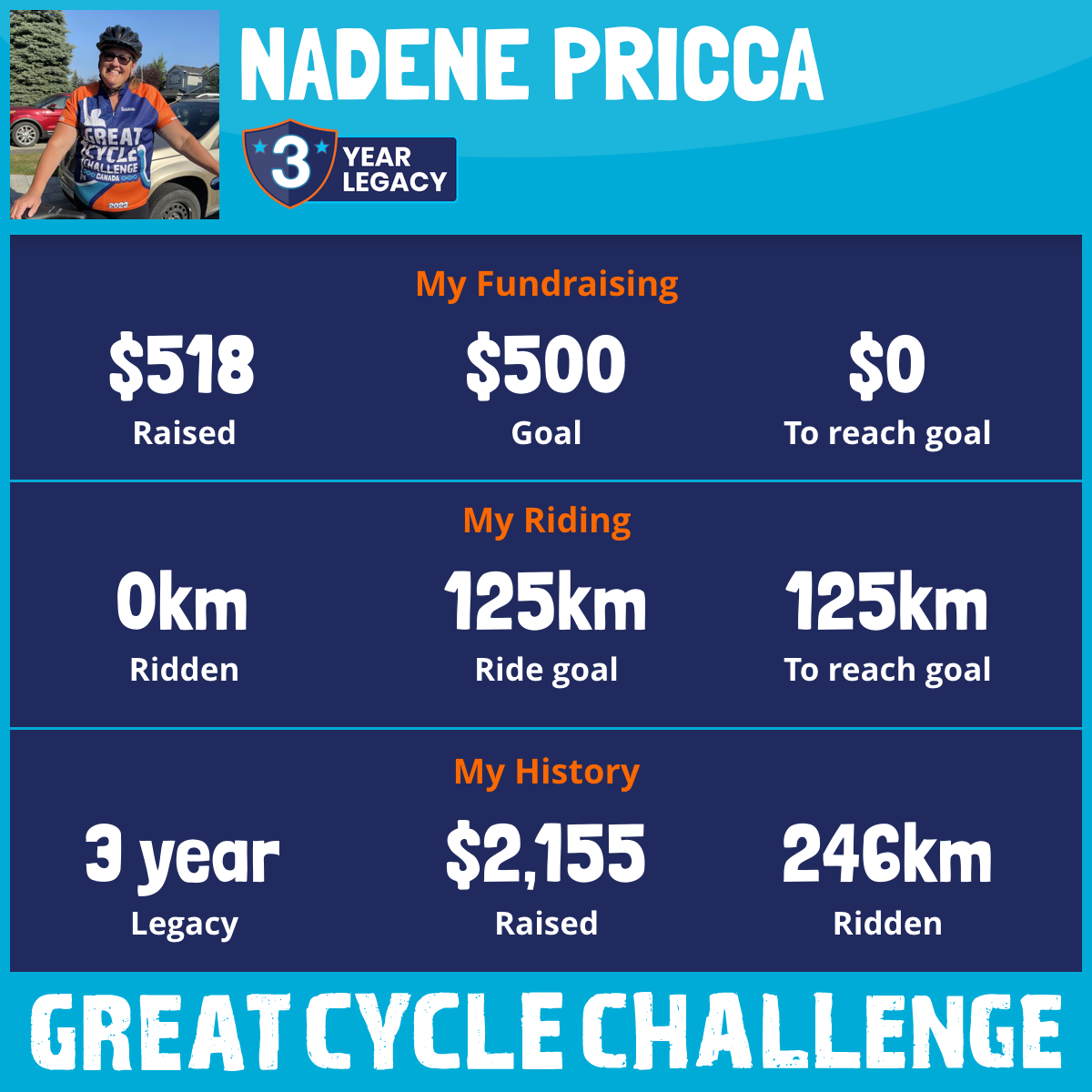 118 km Ridden$1,137 Raised2023