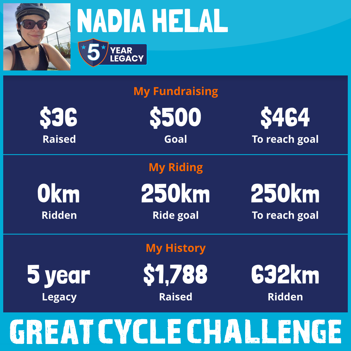 252 km Ridden$1,001 Raised2025