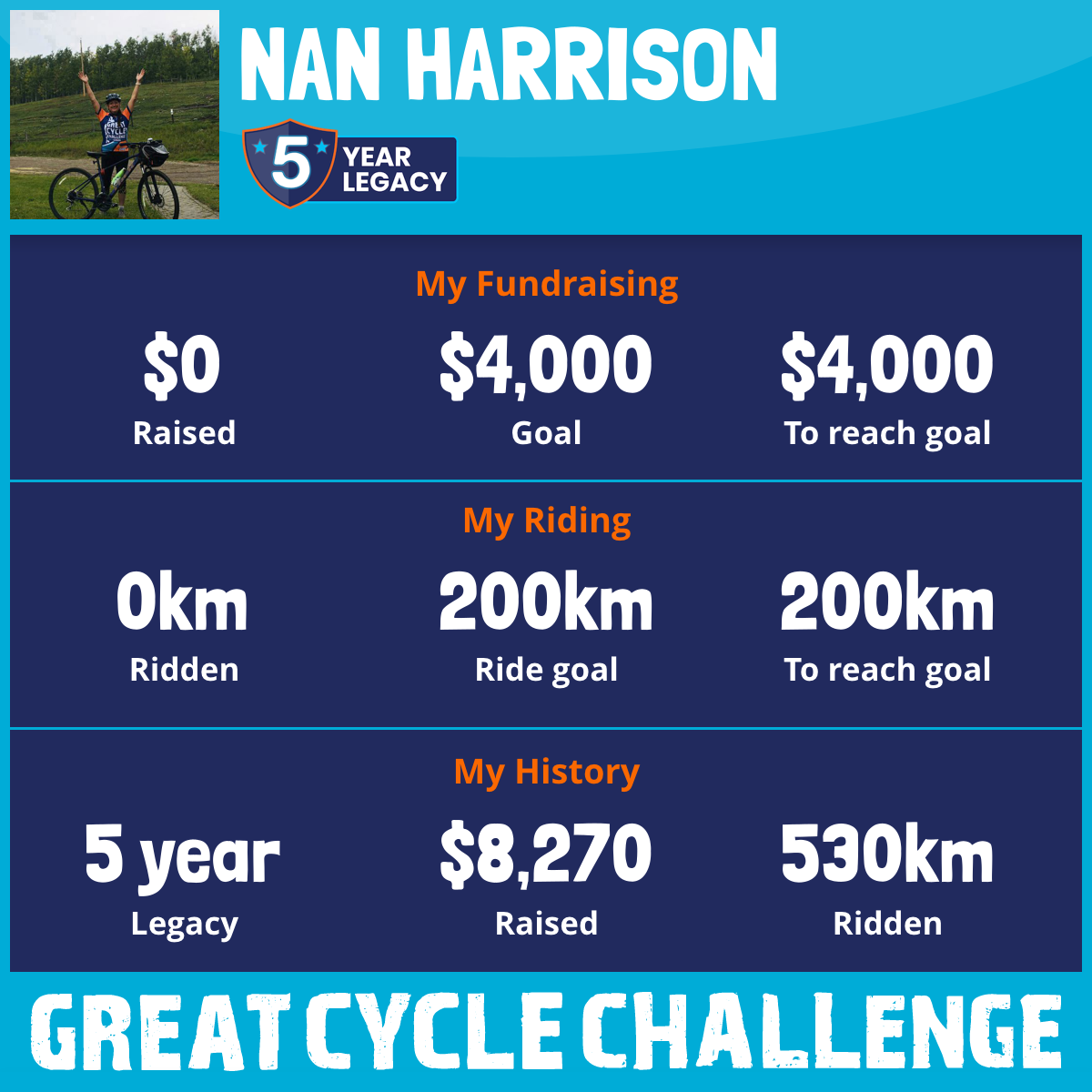 301 km Ridden$3,001 Raised2023