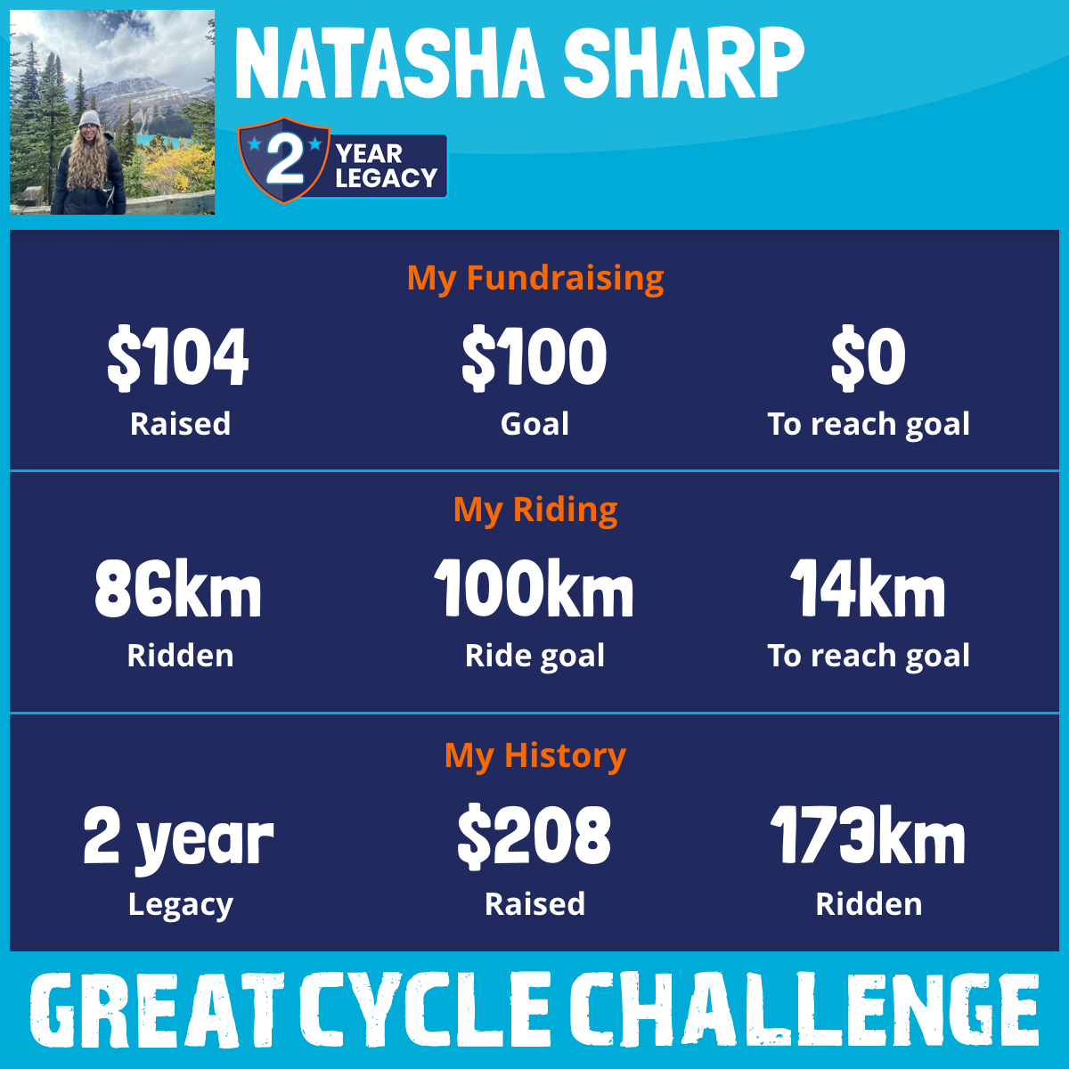 86 km Ridden$104 Raised2026