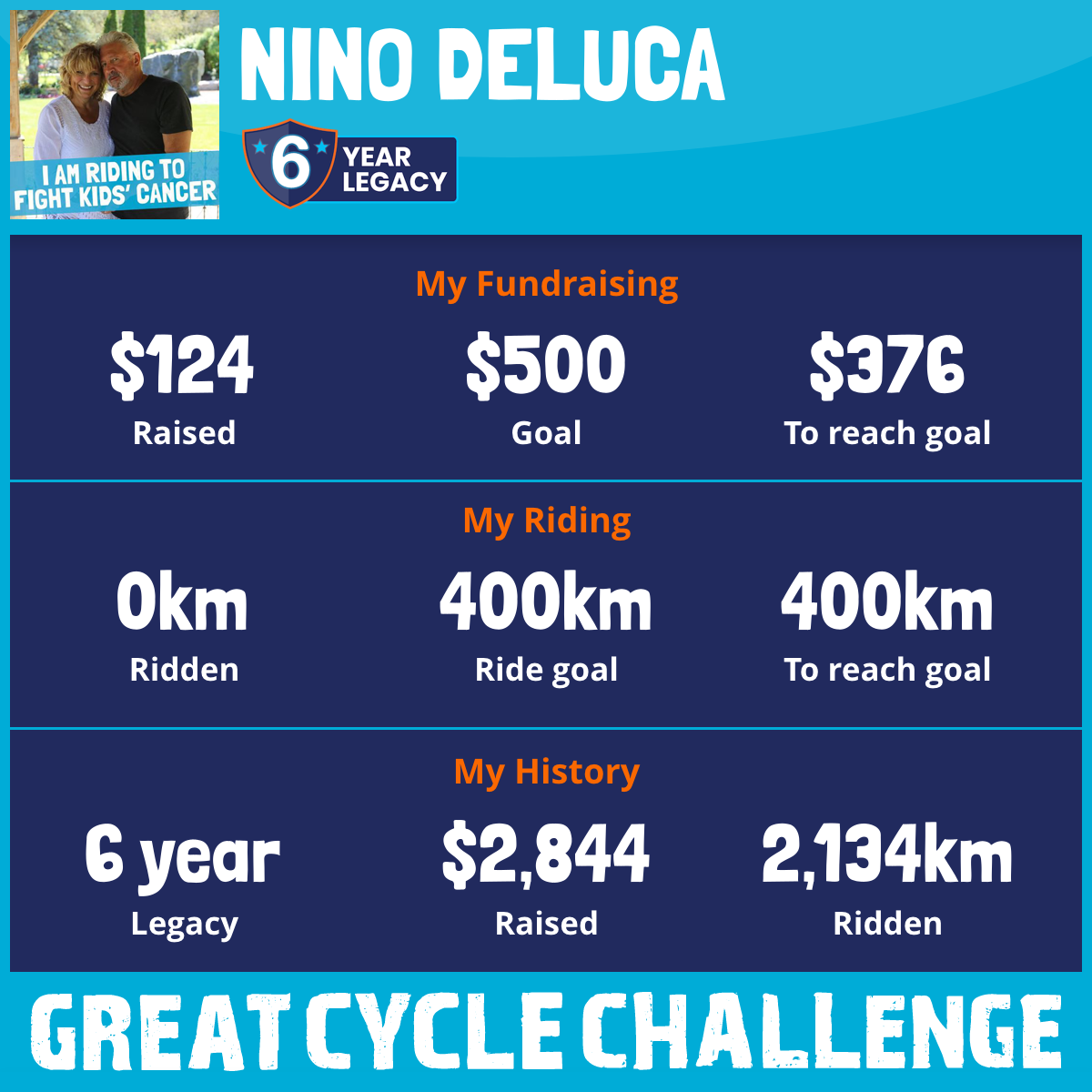 I am riding 400 km in memory of my sister, Dea and Rossana De Luca. Please sponsor me and support my challenge to fight kids' cancer and save little lives.