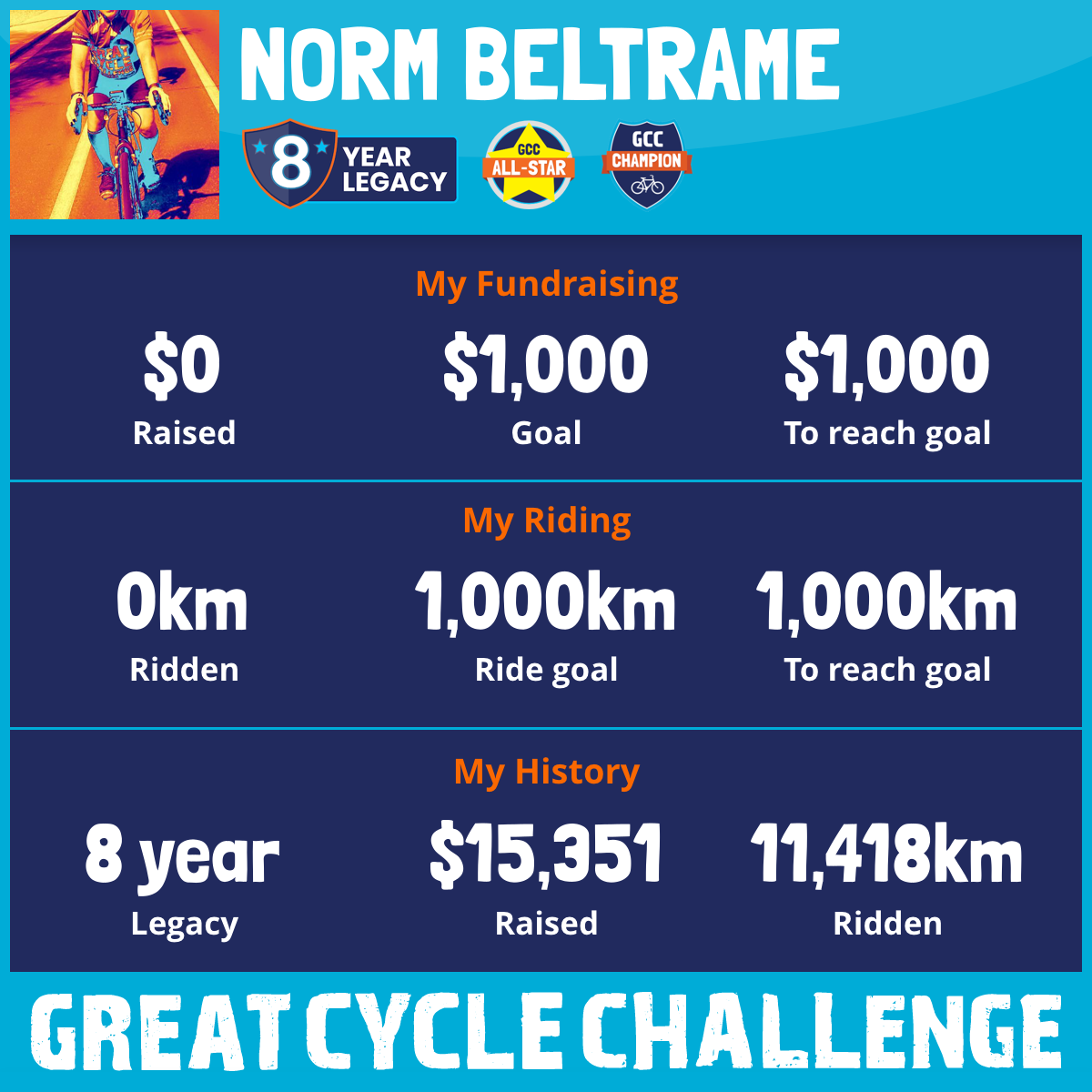 This year 2025, my 8th with Great Cycle Challenge and 5th with our Manitoba based, Tour du Frendz team, I look forward to continued support from my dear donors. Without your help, none of this would be possible. We ride to build awareness about Children afflicted by Cancer. Through your generous donations, the Sick Kids Foundation helps children and their families with cancer. Again this year, refugee children from Ukraine will be treated for cancer as well. We need your support. Let's make 2024 the best fundraising year ever.