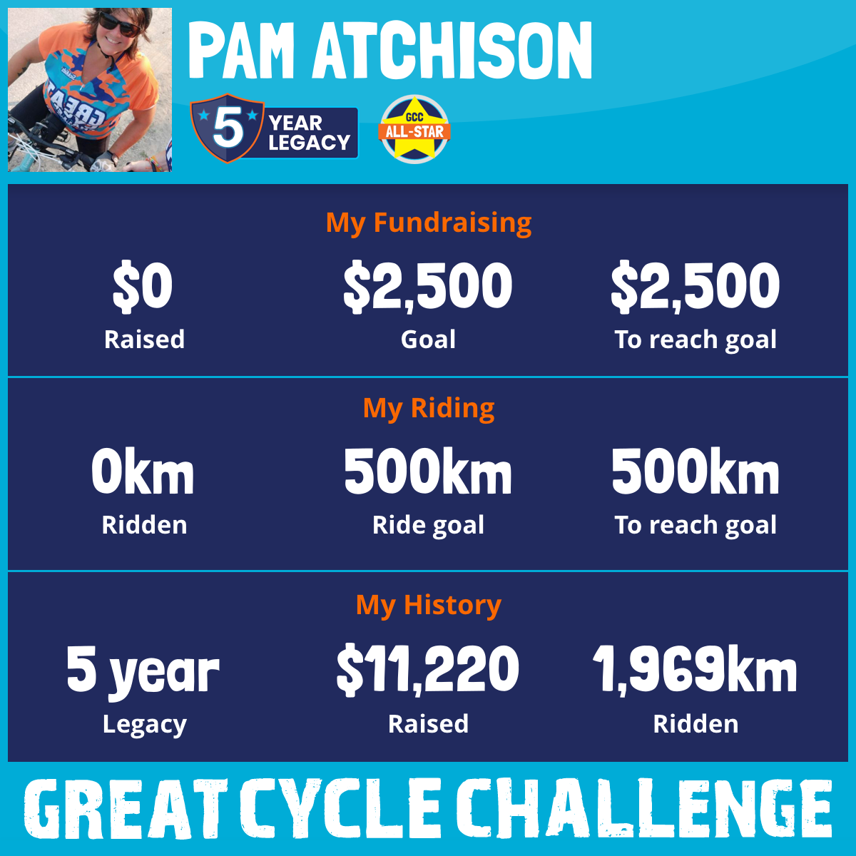 523 km Ridden$3,121 Raised2023