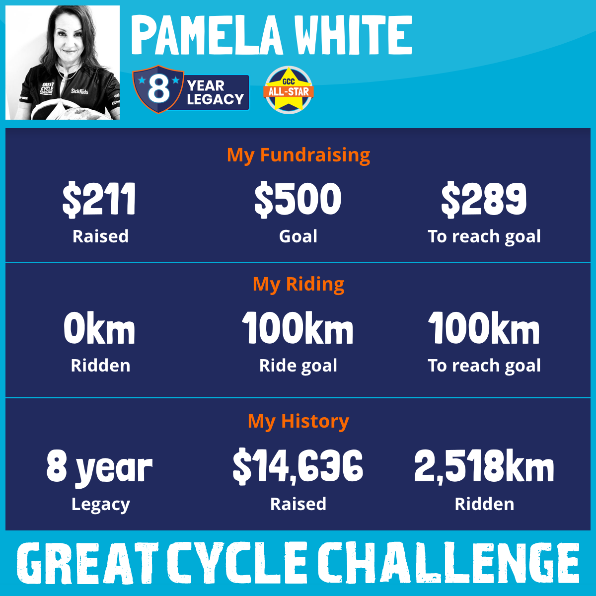 This August, I’m proud to be riding in the Great Cycle Challenge for the 8th year, in support of SickKids Foundation.