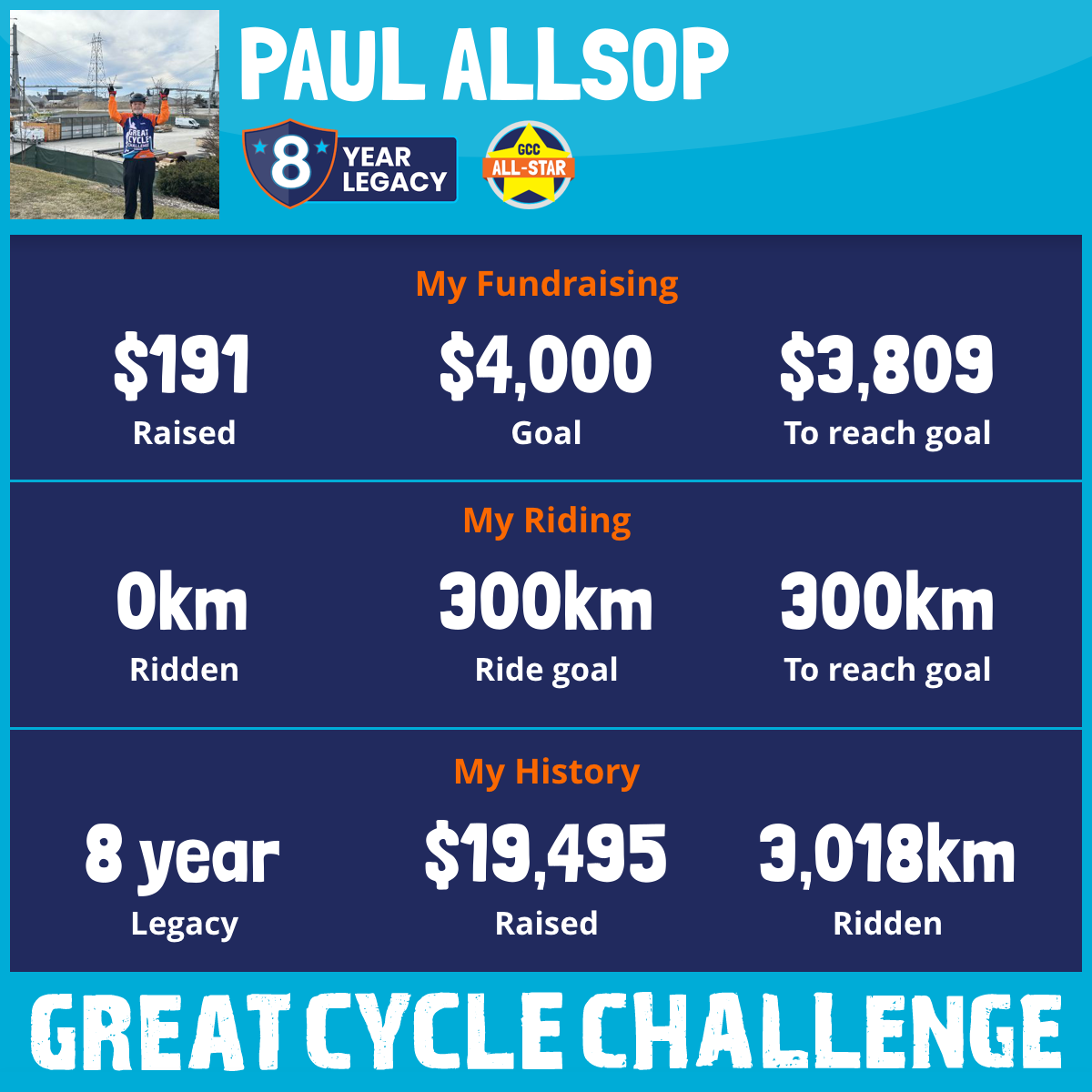 301 km Ridden$4,004 Raised2024
