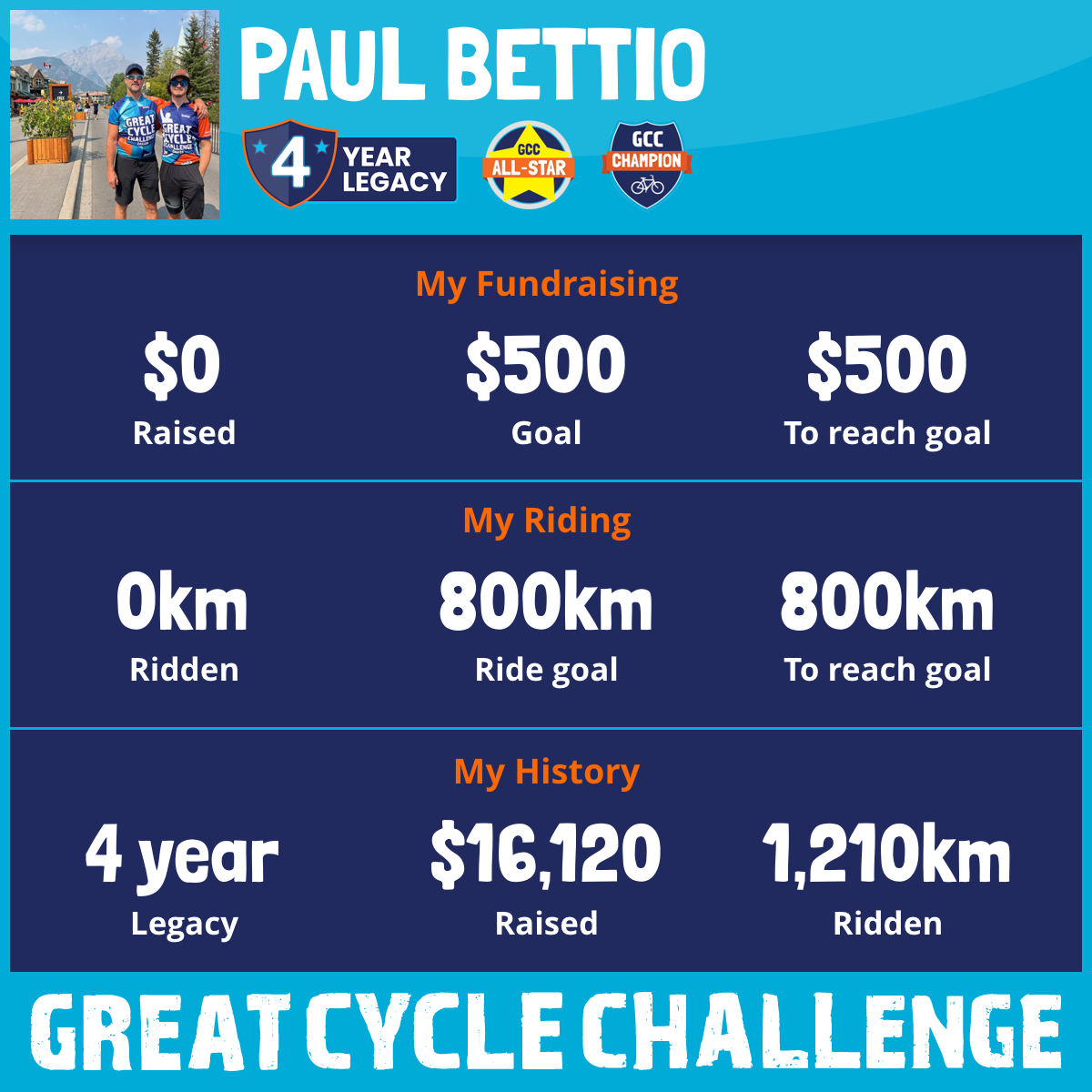 122 km Ridden$1,605 Raised2026