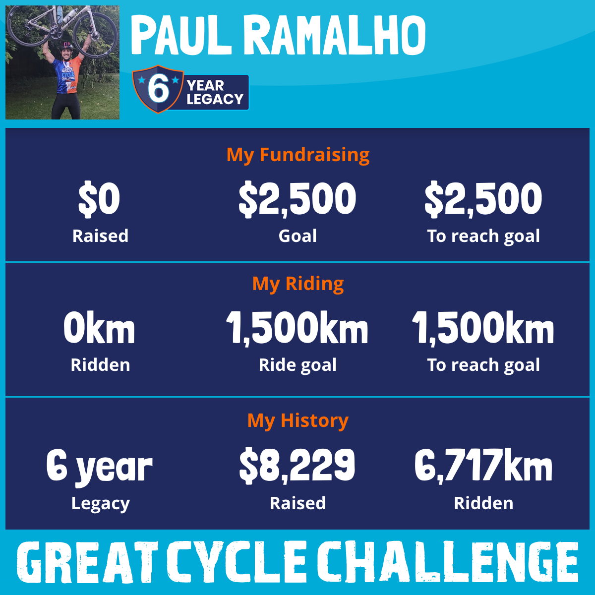 This August, I am taking part in the Great Cycle Challenge to fight kids cancer! My goal is to raise $2500 and ride at least 1500km to help support the fight against kids cancer.