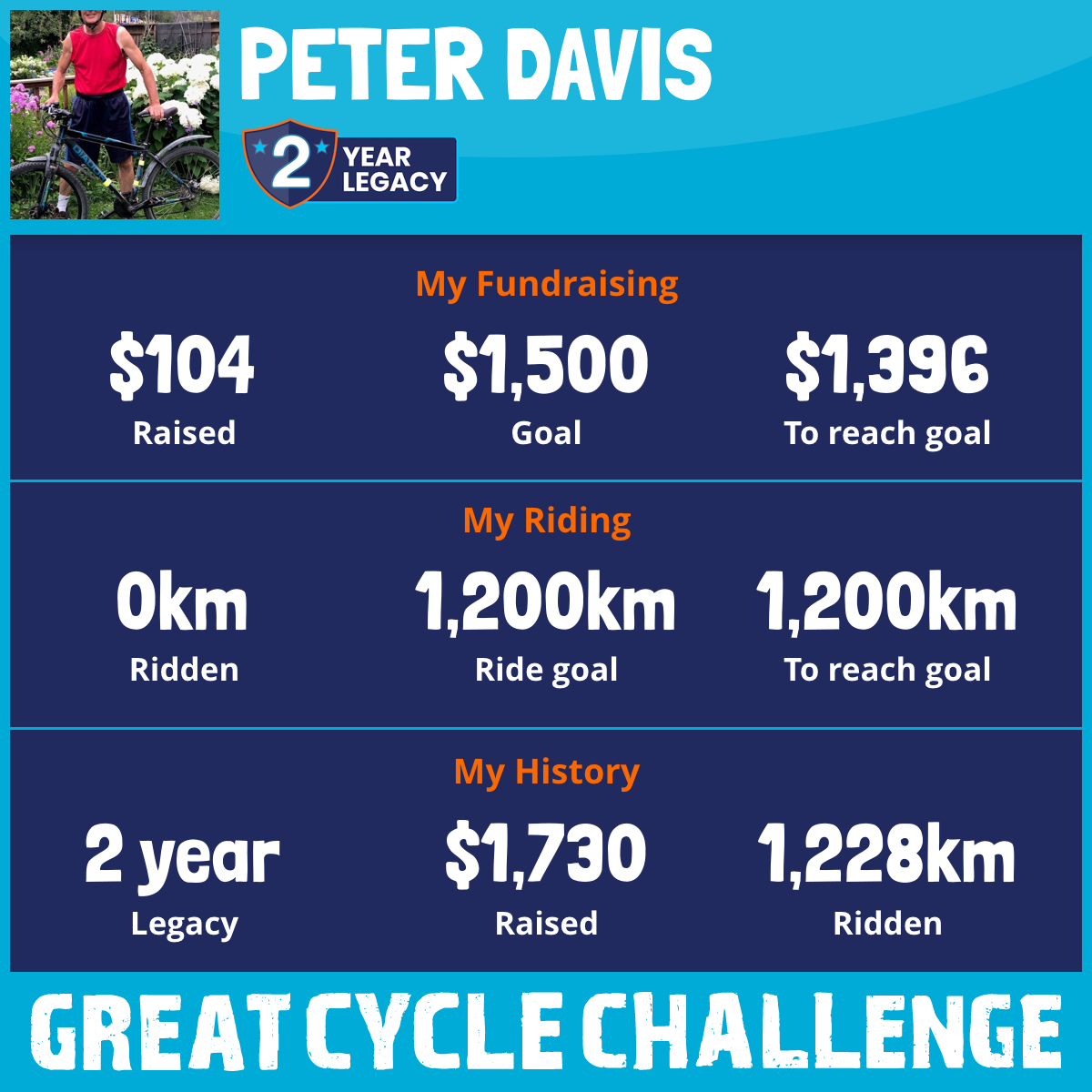 1,249 km Ridden$2,030 Raised2026