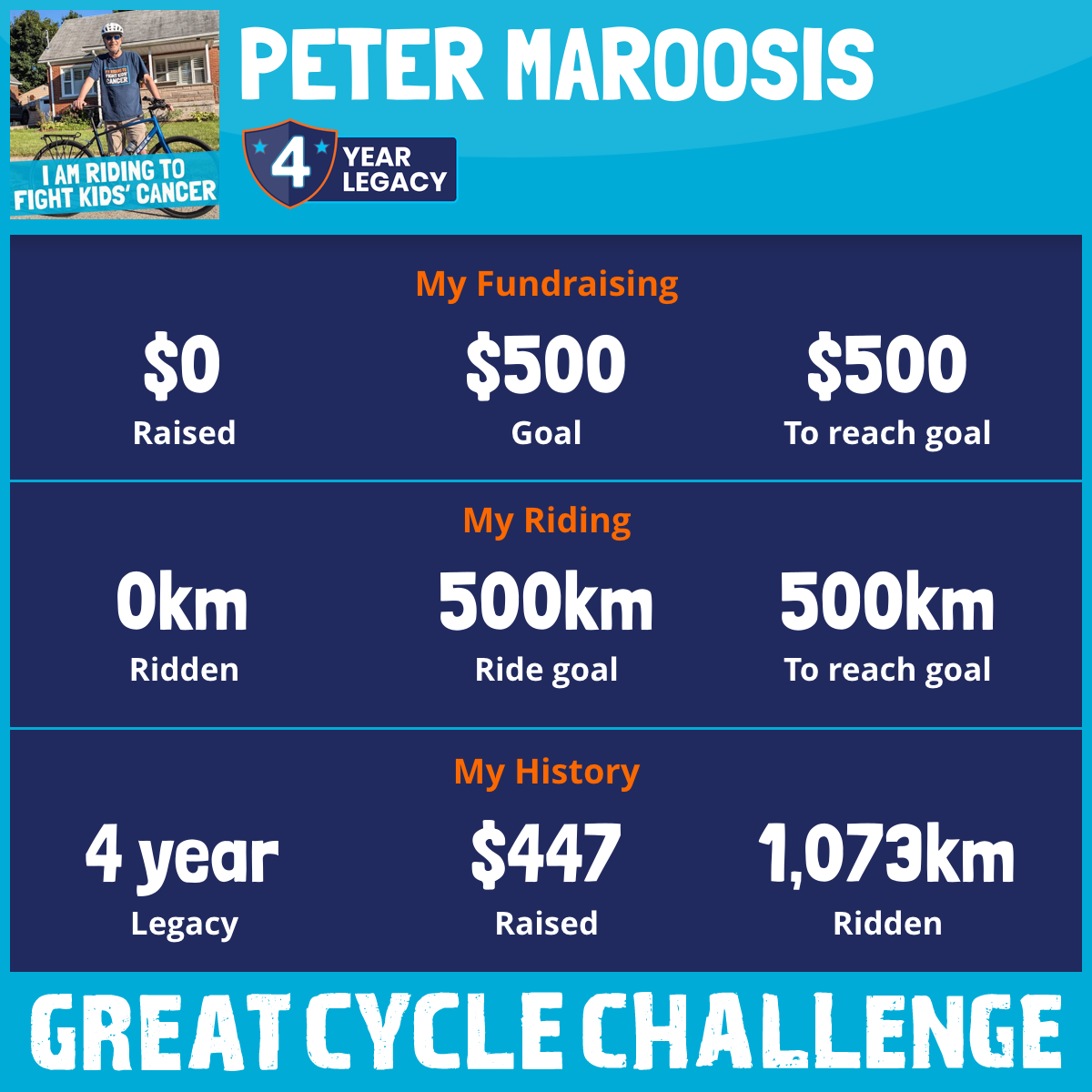 This August, I am taking part in the Great Cycle Challenge to fight kids' cancer!