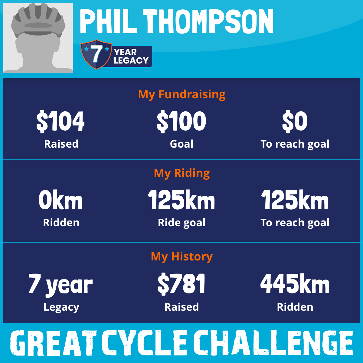 I am riding 125 km for Mike & Dawn Thompson and Phyl Staples. Please sponsor me and support my challenge to fight kids' cancer and save little lives.