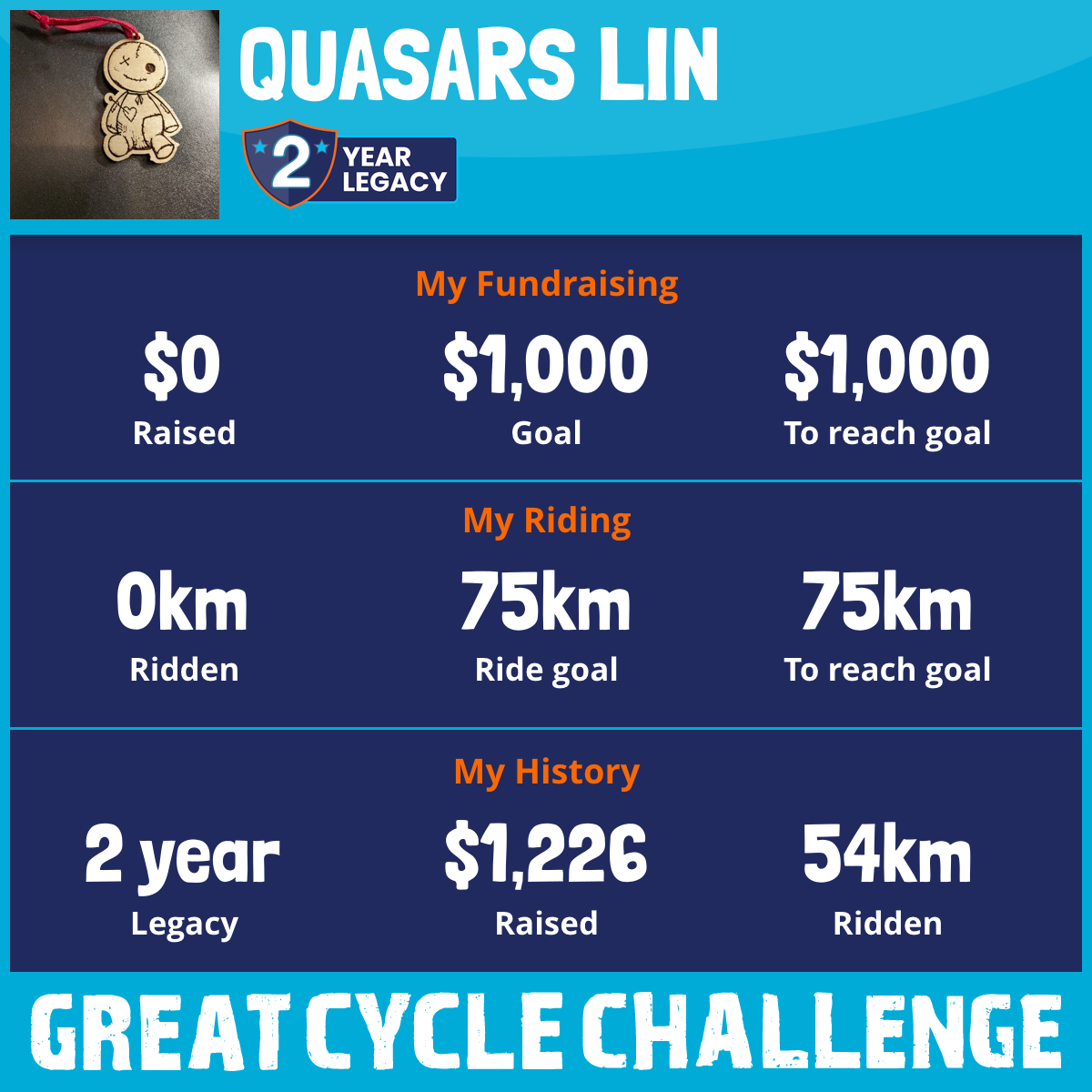54 km Ridden$1,226 Raised2024