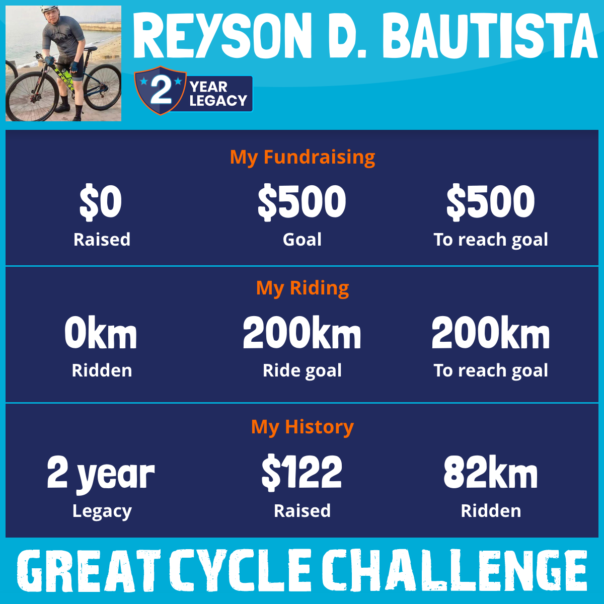 82 km Ridden$122 Raised2023