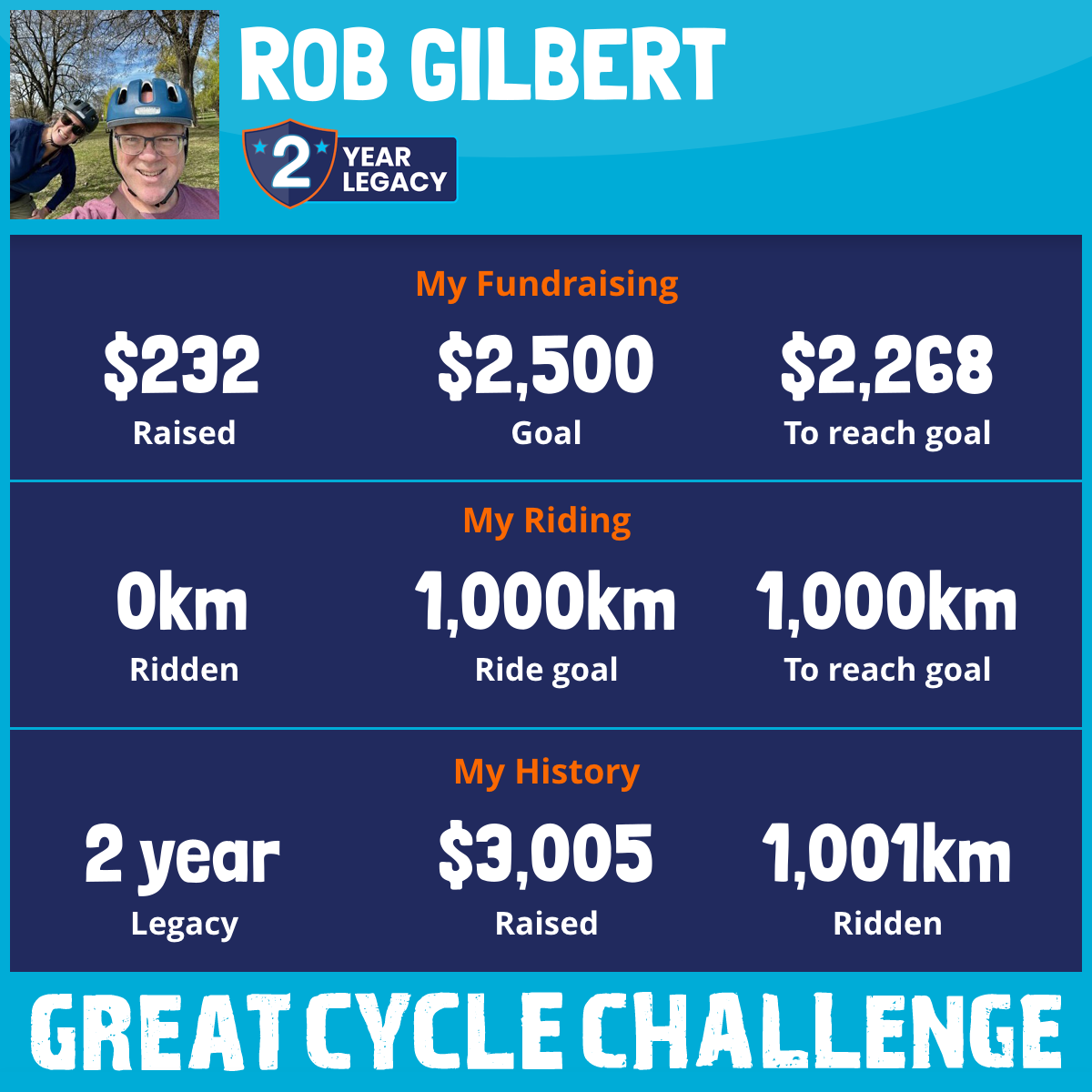 1,000 km Ridden$2,859 Raised2026