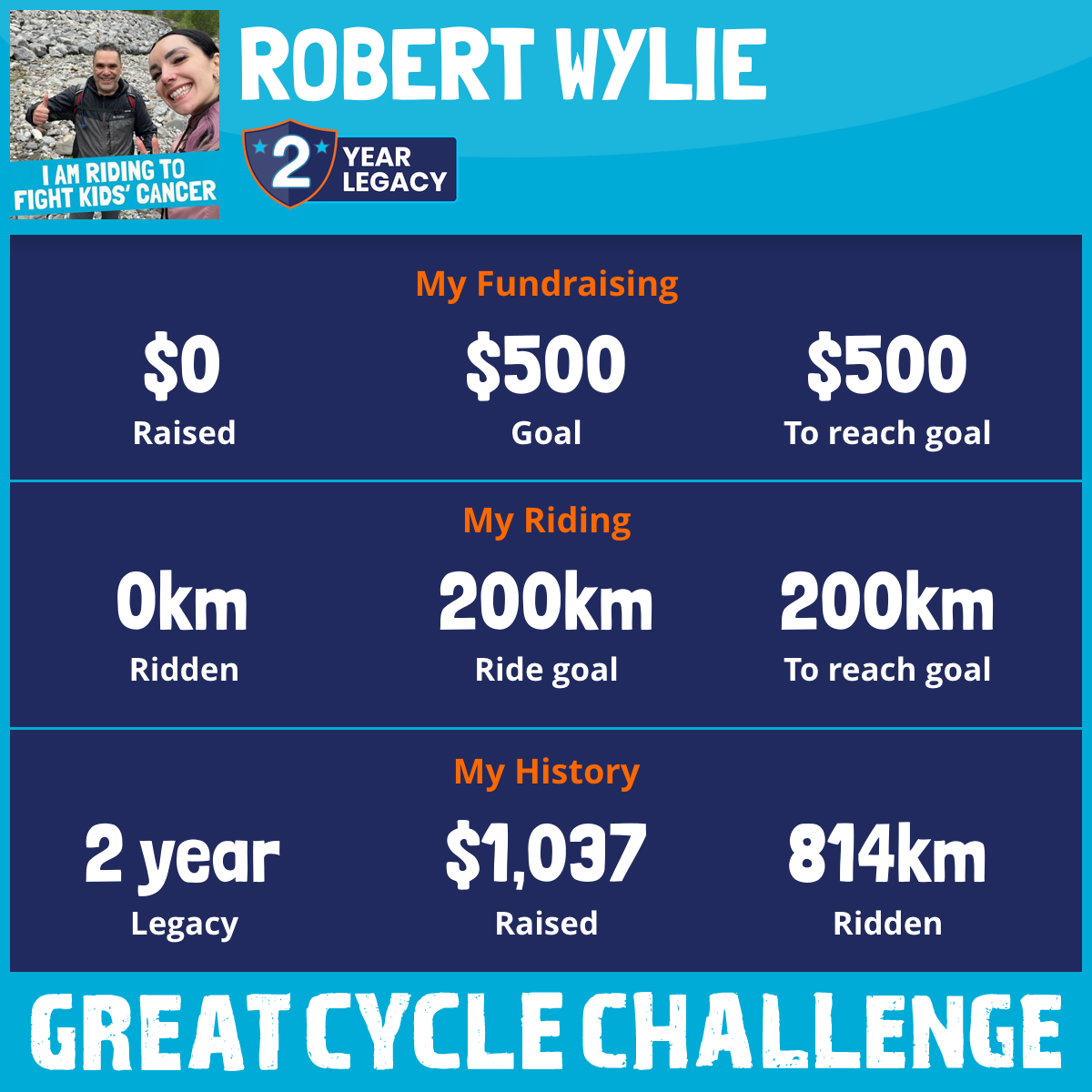 I am riding 500 km in memory of JOHN JAMES WYLIE. Please sponsor me and support my challenge to fight kids' cancer and save little lives.