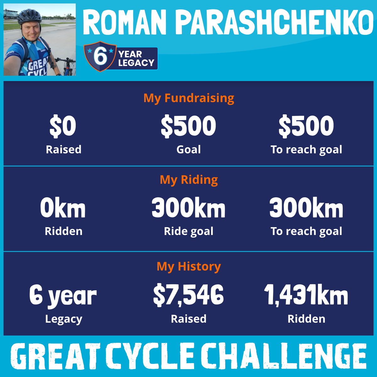 143 km Ridden$2,841 Raised2024