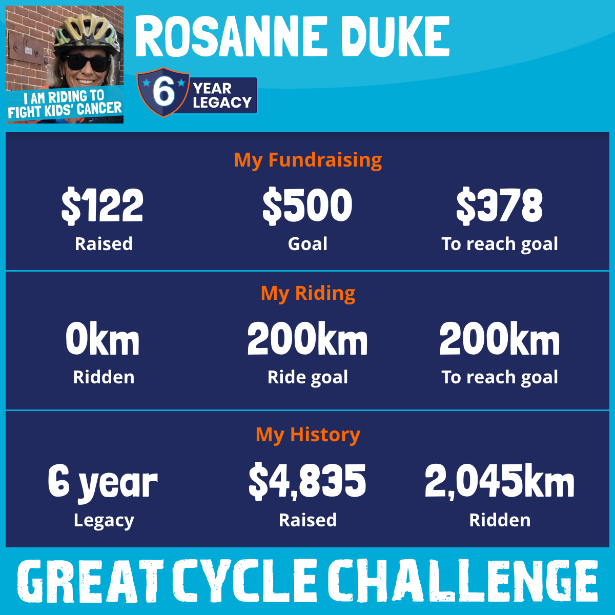 This August, I am taking part in the Great Cycle Challenge to fight kids' cancer!
