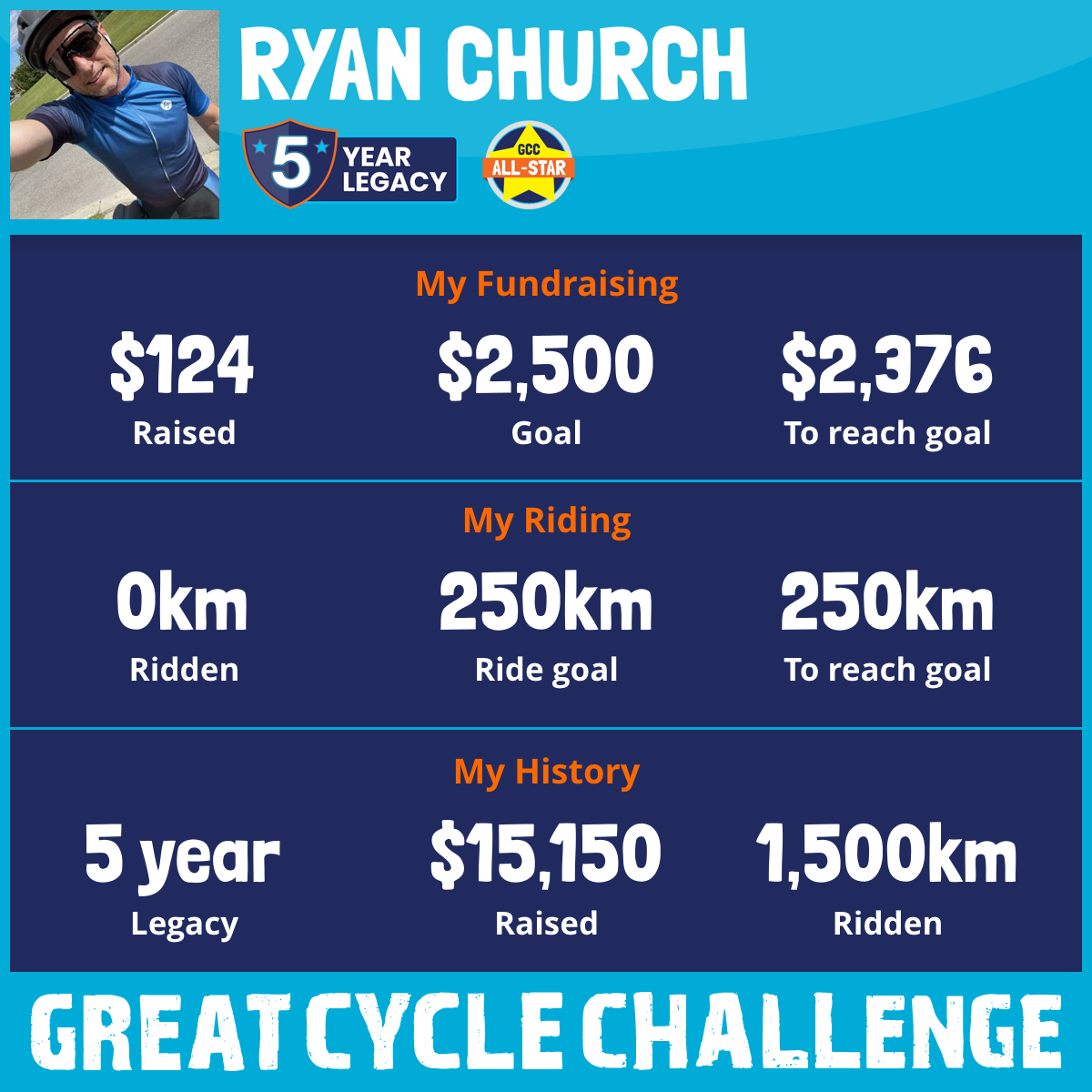 I am riding 250 km in memory of Harold J. Church. Please sponsor me and support my challenge to fight kids' cancer and save little lives.