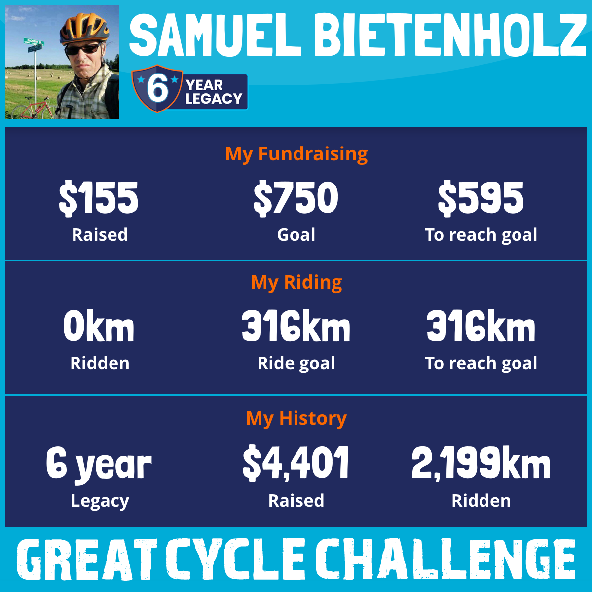 It is August and another year for the Great Cycle Challenge to Fight Kids' Cancer! Please help me raise $744 by donating to my 372km challenge for 2025.