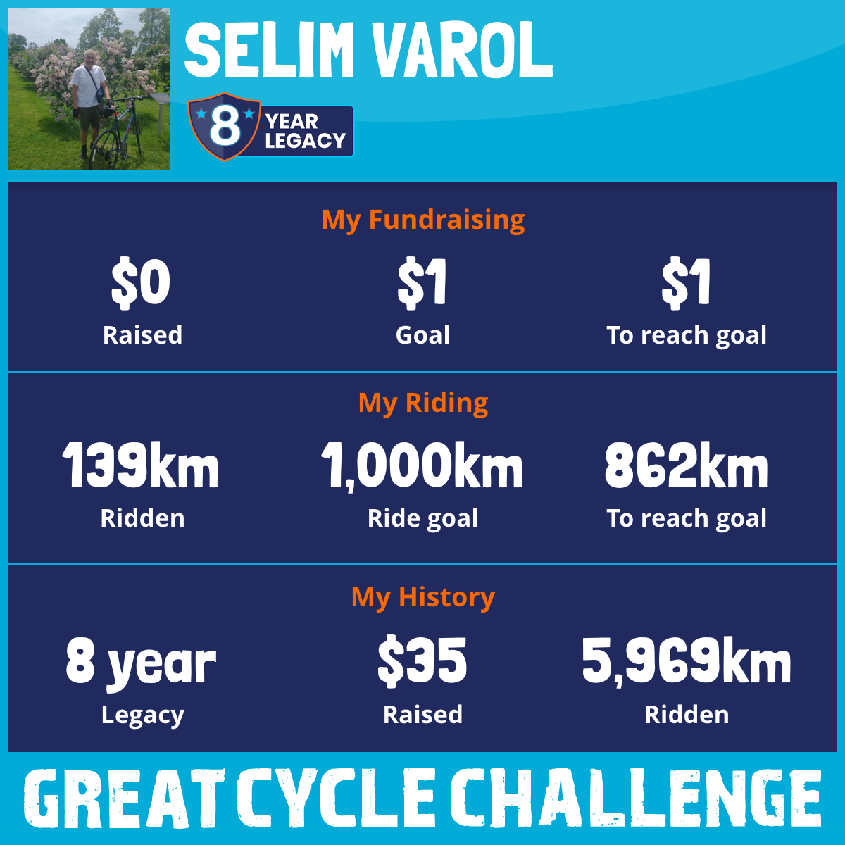 1,006 km Ridden$35 Raised2023