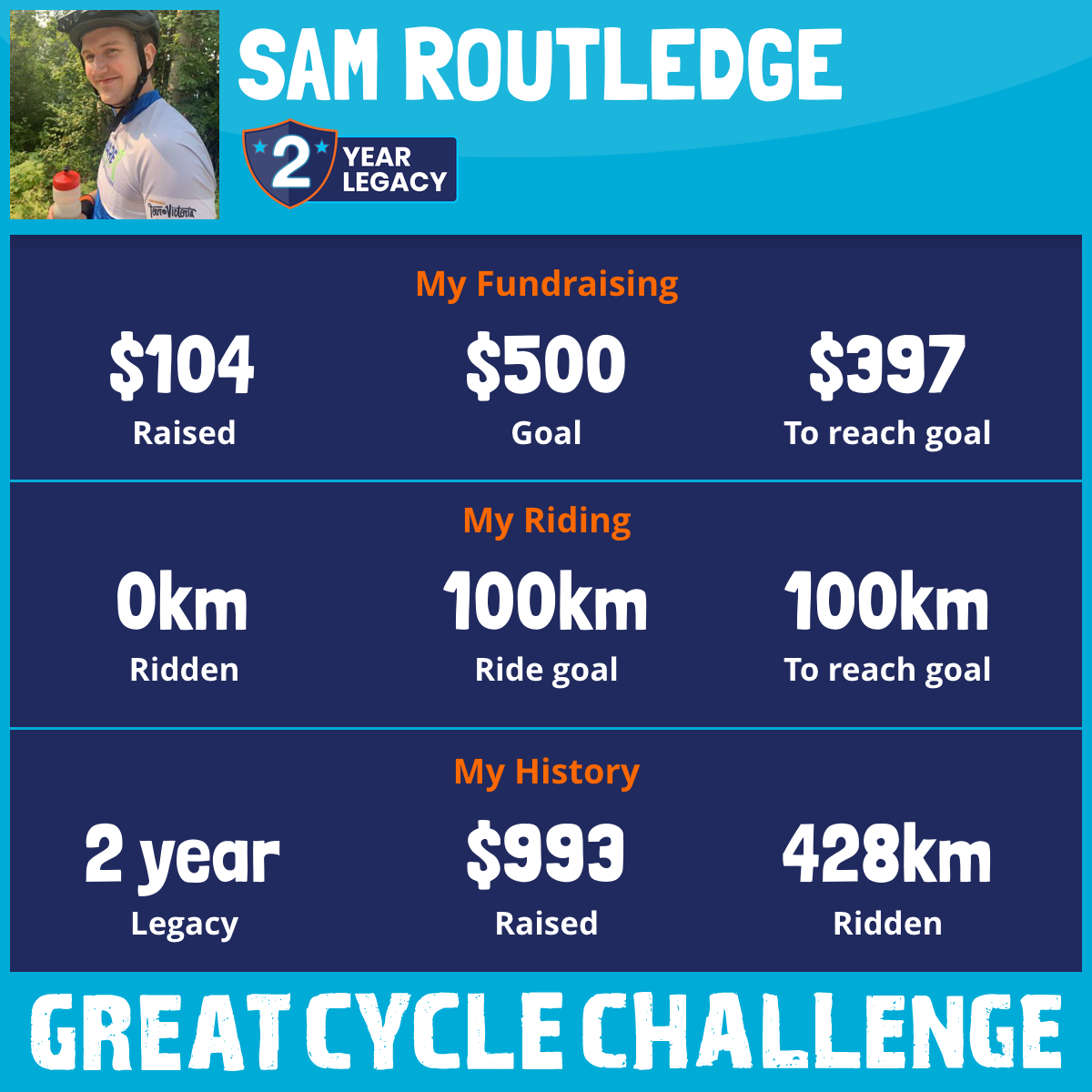 428 km Ridden$889 Raised2023