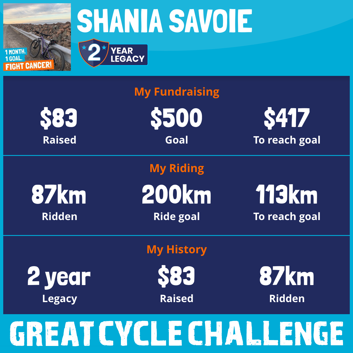 181 km Ridden$83 Raised2025