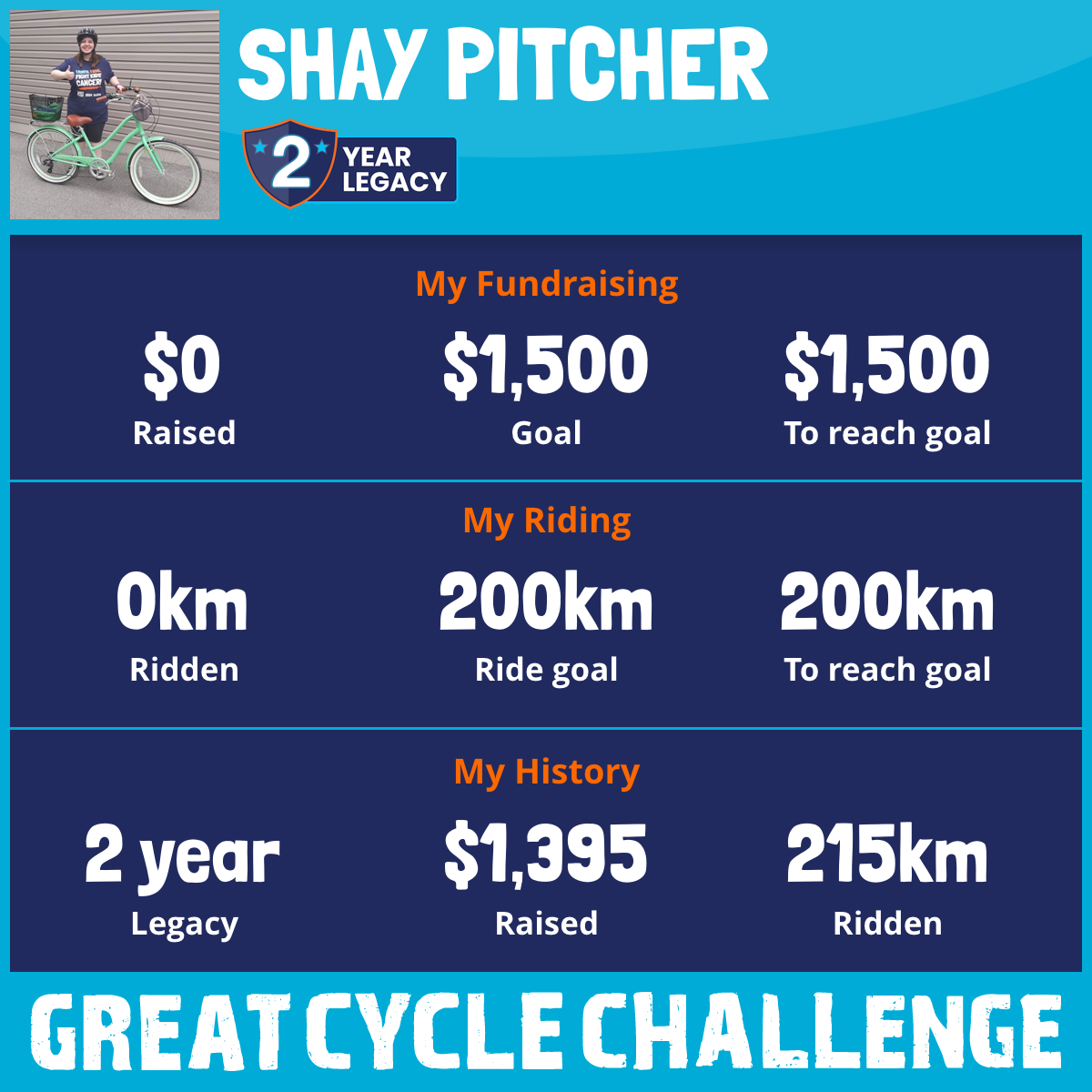 215 km Ridden$1,395 Raised2024