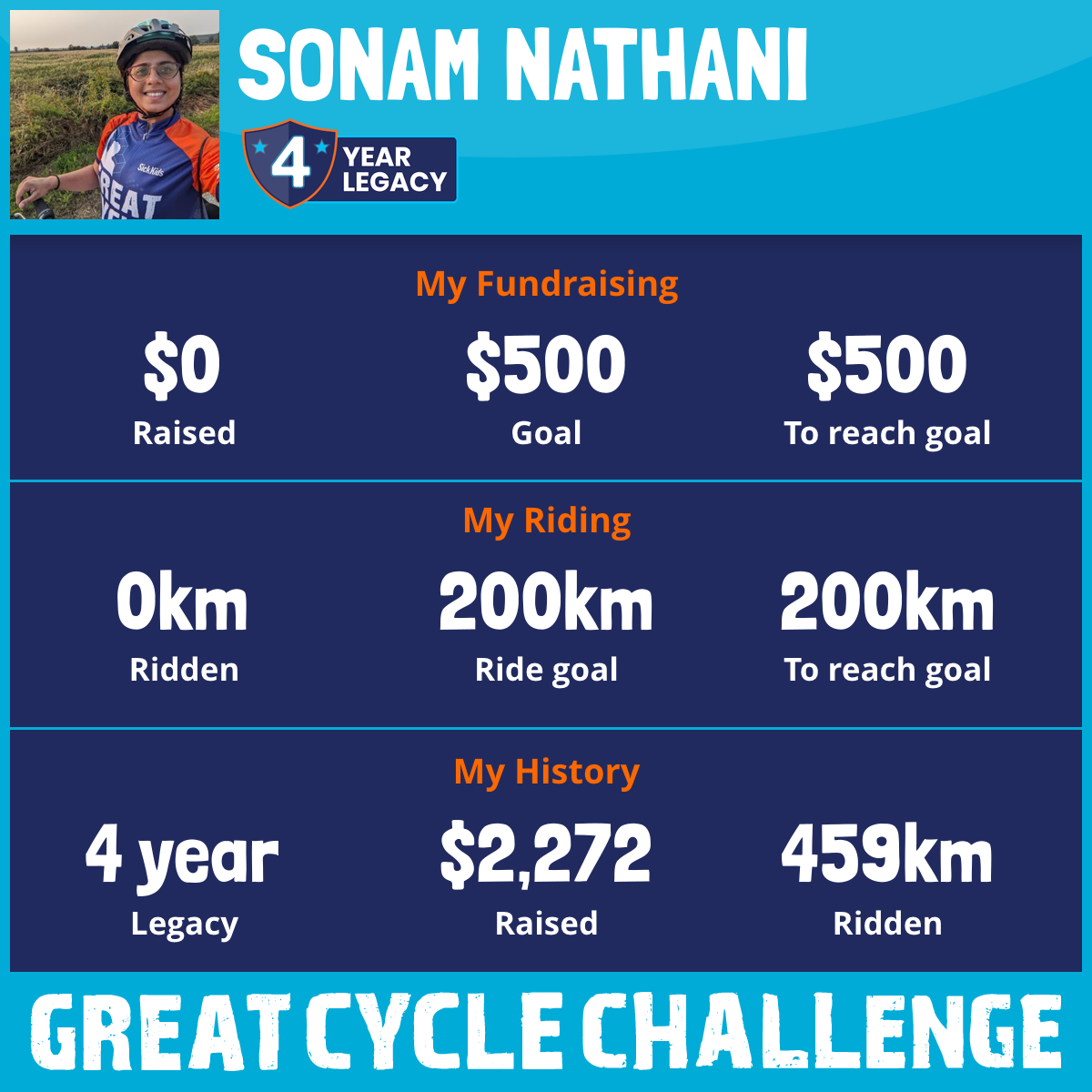 I'm excited to be participating again in the Great Cycle Challenge. I will be riding 200KMS this month to help raise donations for the SickKids Foundation to allow them to continue their work in developing treatments and finding a cure for childhood cancer.