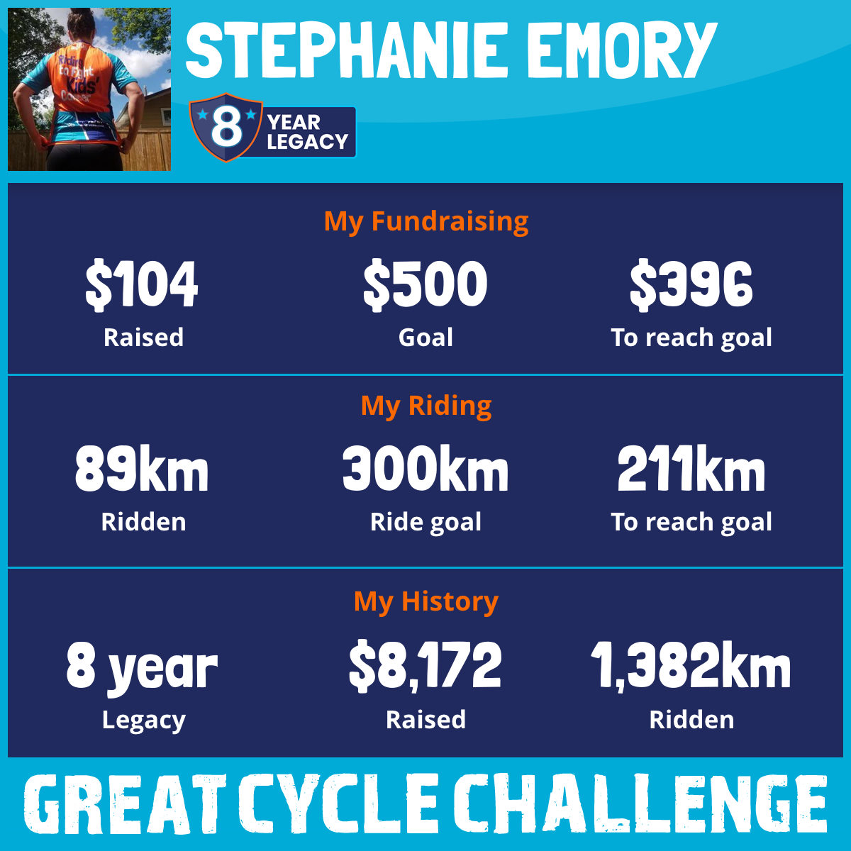 This August, I am taking part in the Great Cycle Challenge to fight kids' cancer!