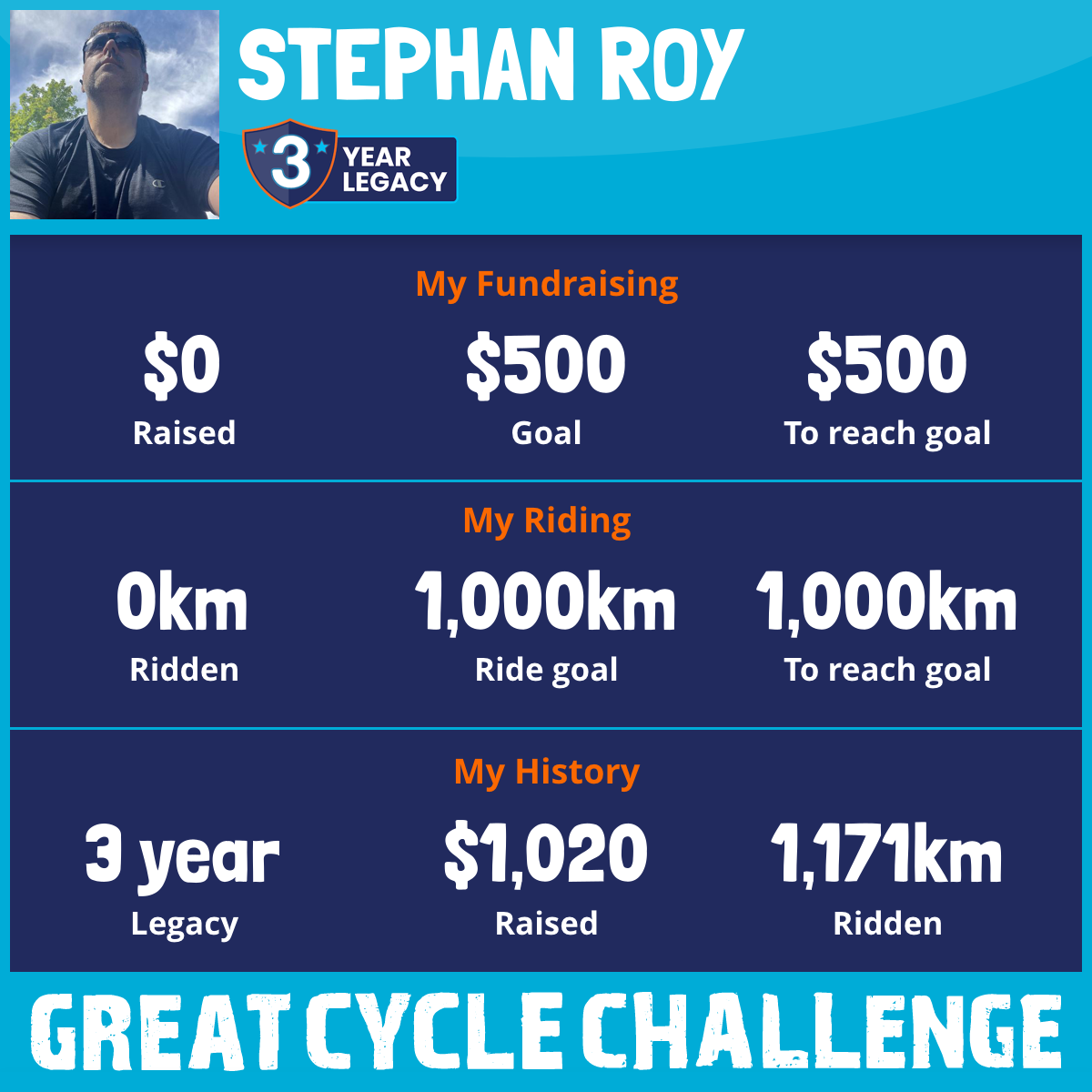 1,192 km Ridden$2,001 Raised2026