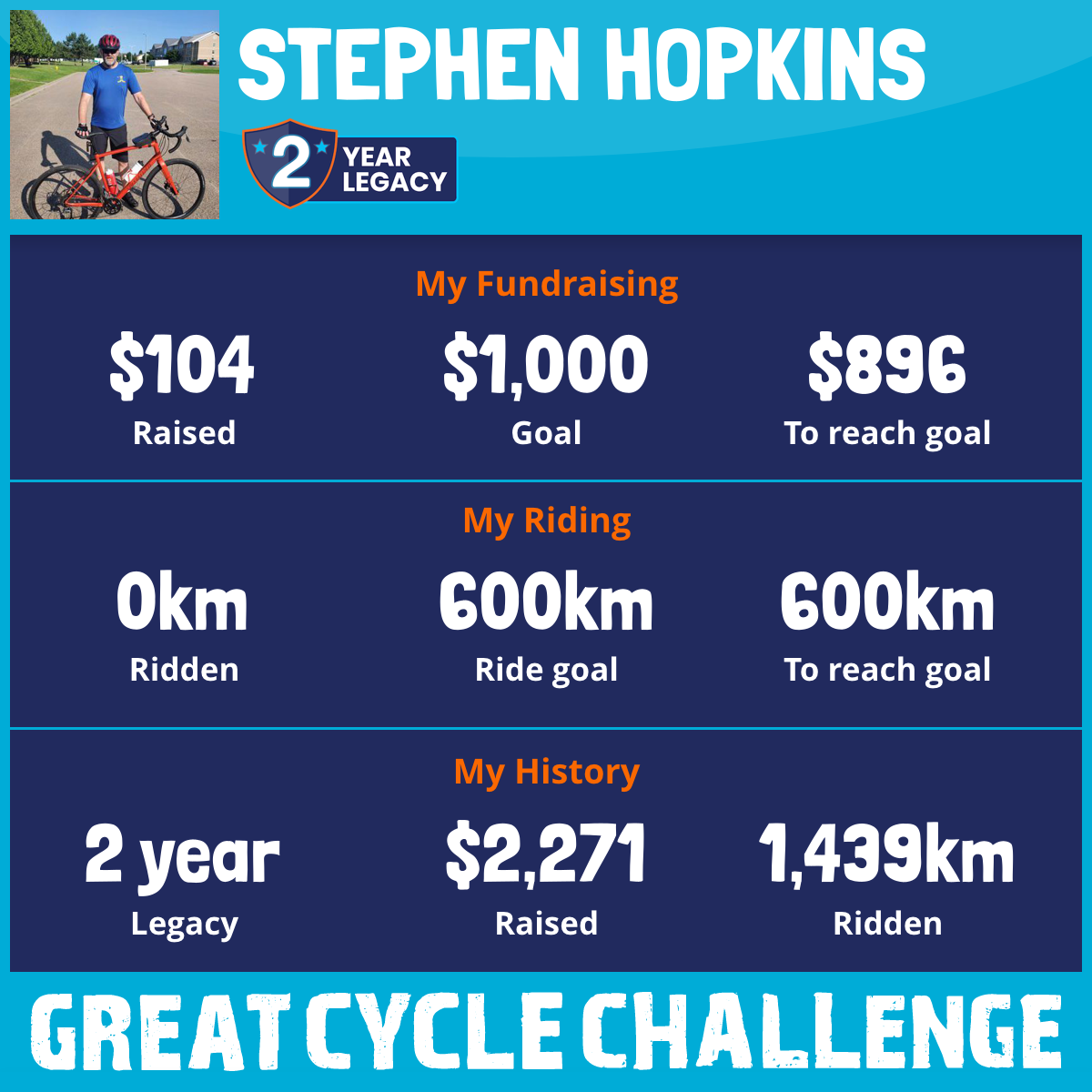 This August, I am taking part in the Great Cycle Challenge to fight kids' cancer!