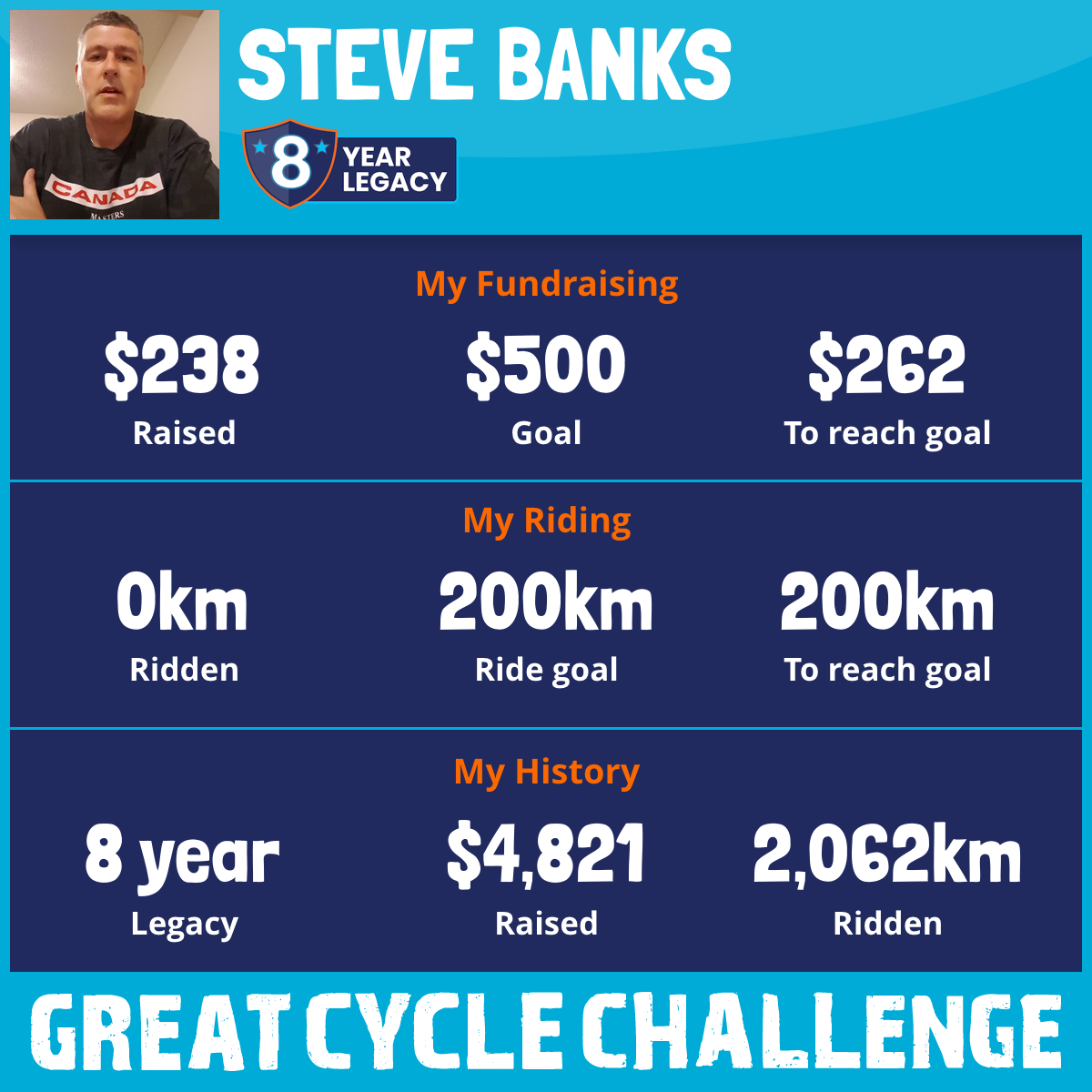 So I am raising funds through my challenge to help these kids and support SickKids Foundation to allow them to continue their work in developing treatments and finding a cure for childhood cancer. My late friend, Kevin Pelehos, participated in this event for a couple of years and I want to carry on what he started by contributing to his legacy.