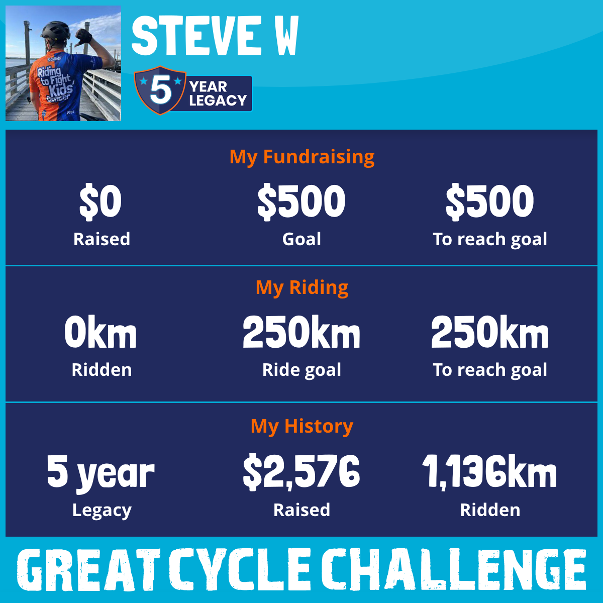 For the fifth consecutive year, this August, I am participating in the Great Cycle Challenge to support kids' cancer research.
