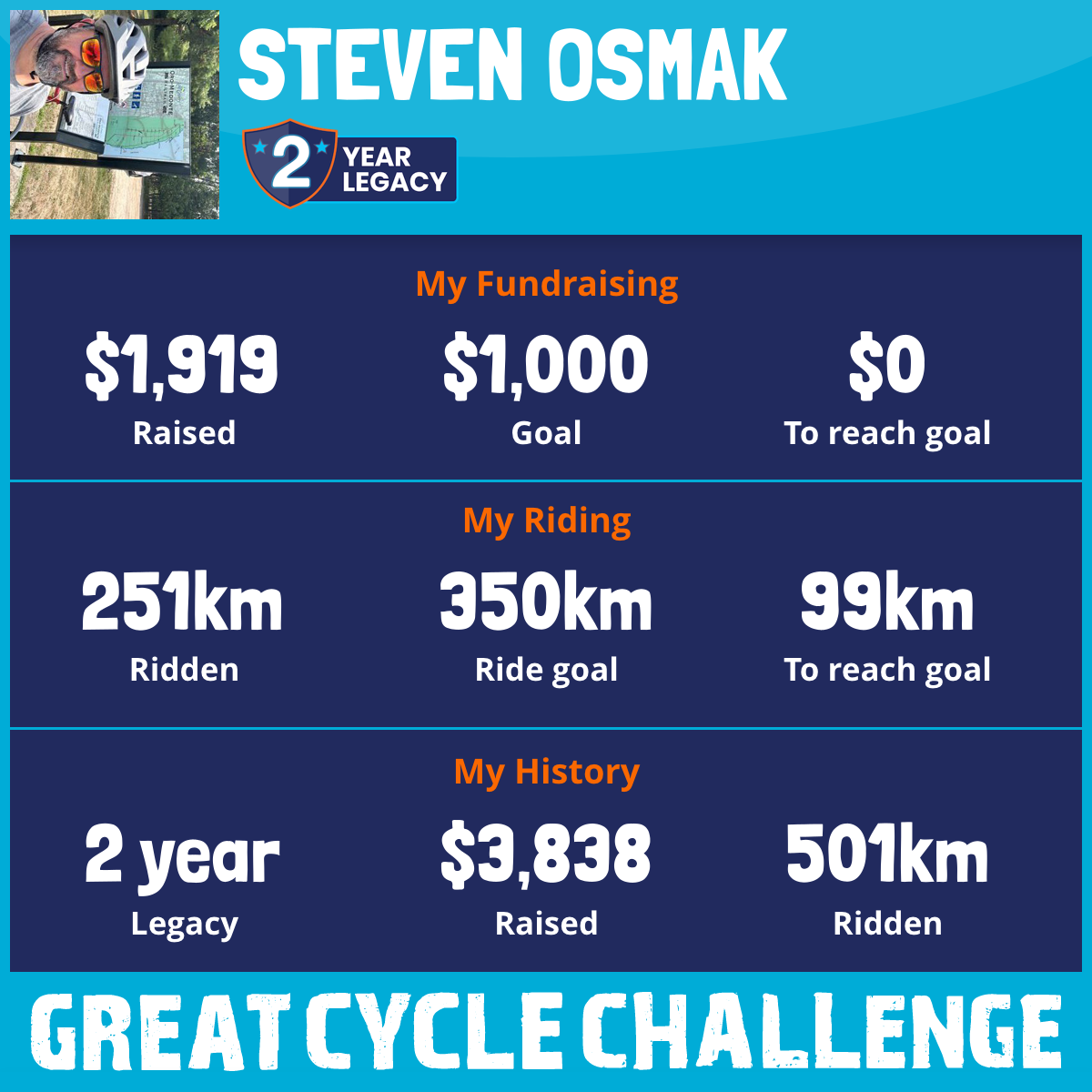 251 km Ridden$1,919 Raised2026
