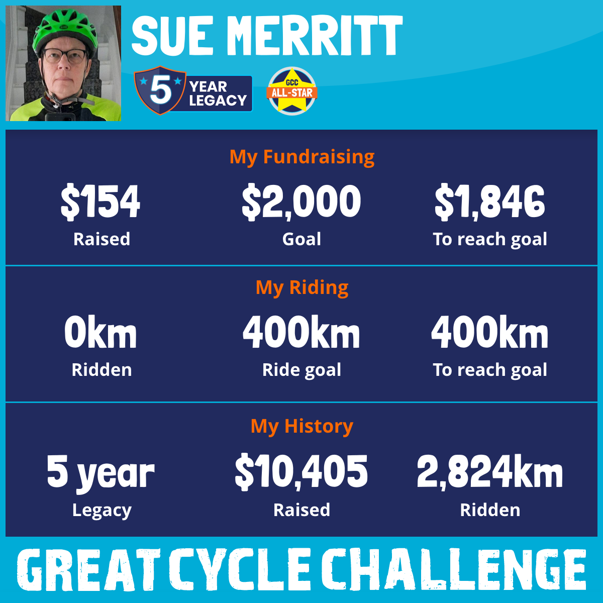 1,098 km Ridden$3,779 Raised2024