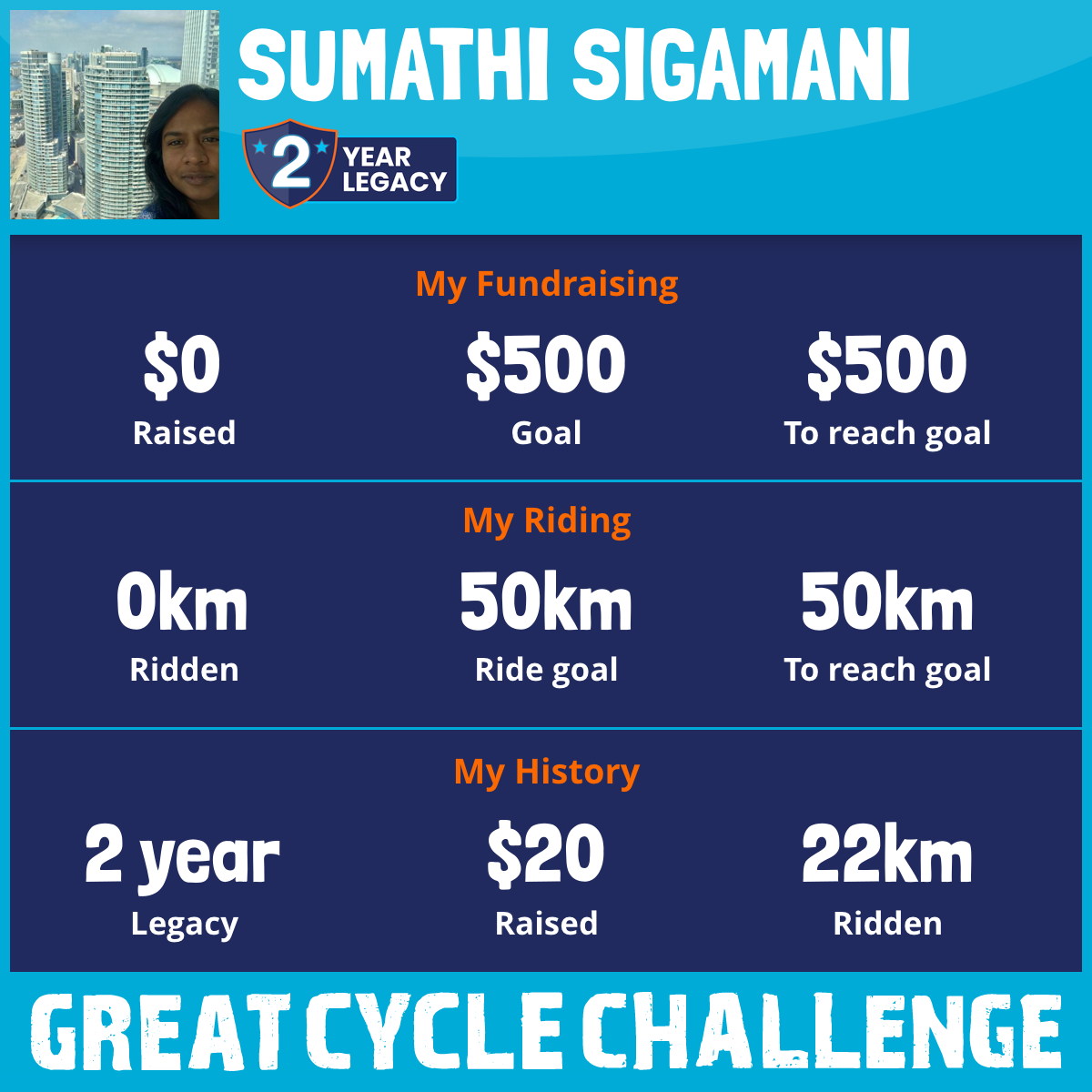 22 km Ridden$20 Raised2019