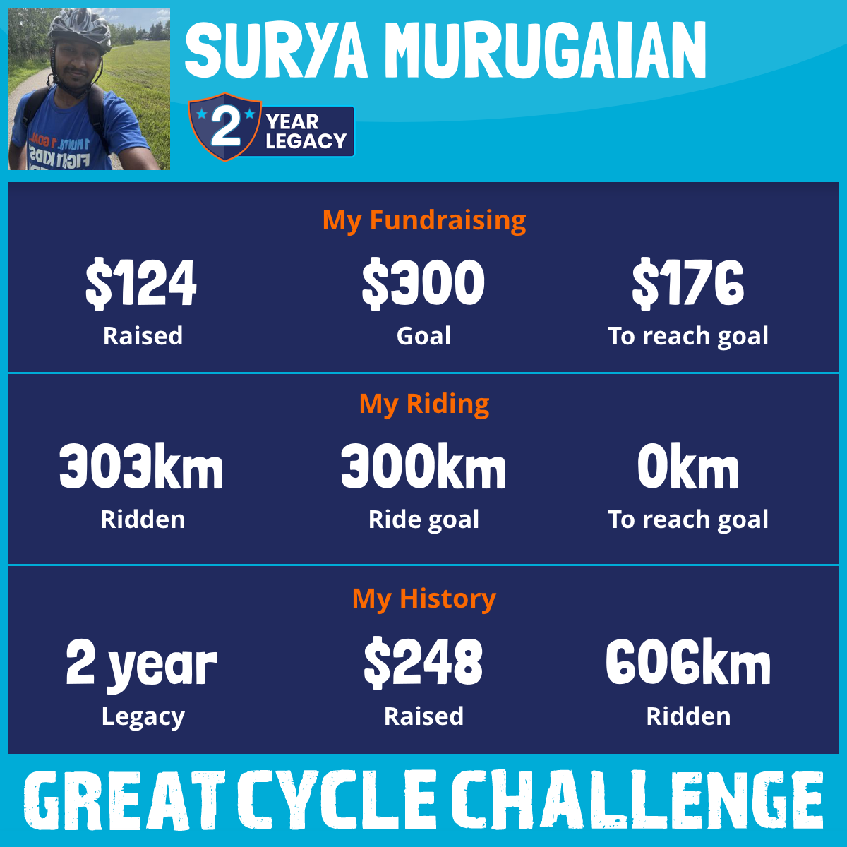 303 km Ridden$124 Raised2026