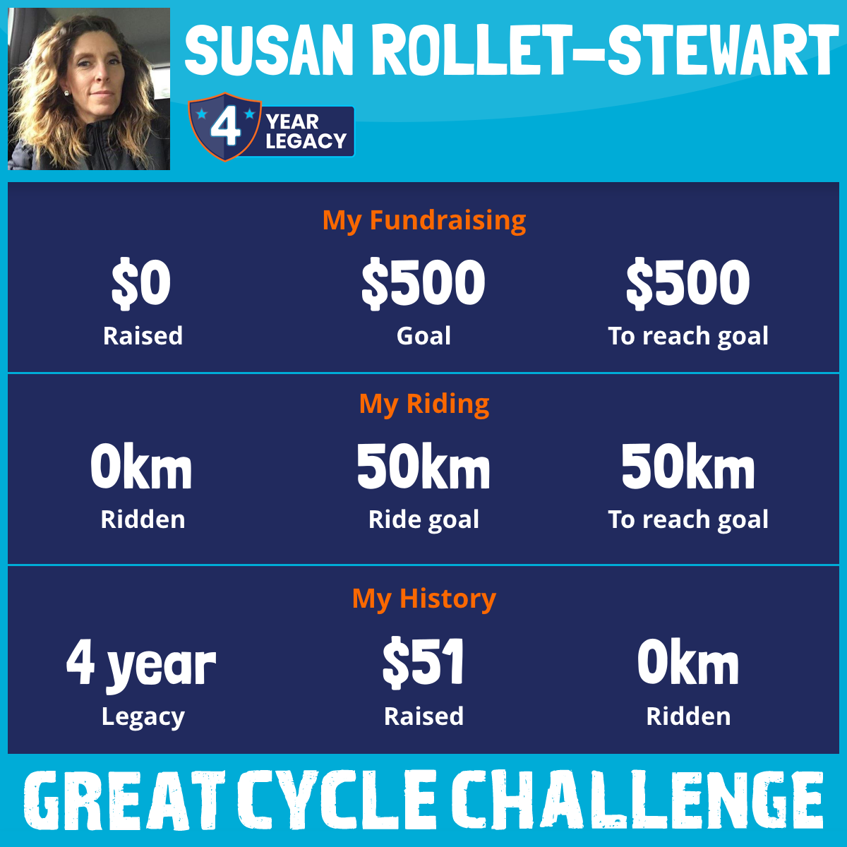 I am riding 50 km in memory of my friend, Stacey Kelly, my shero and Roger Lambert. Please sponsor me and support my challenge to fight kids' cancer and save little lives.