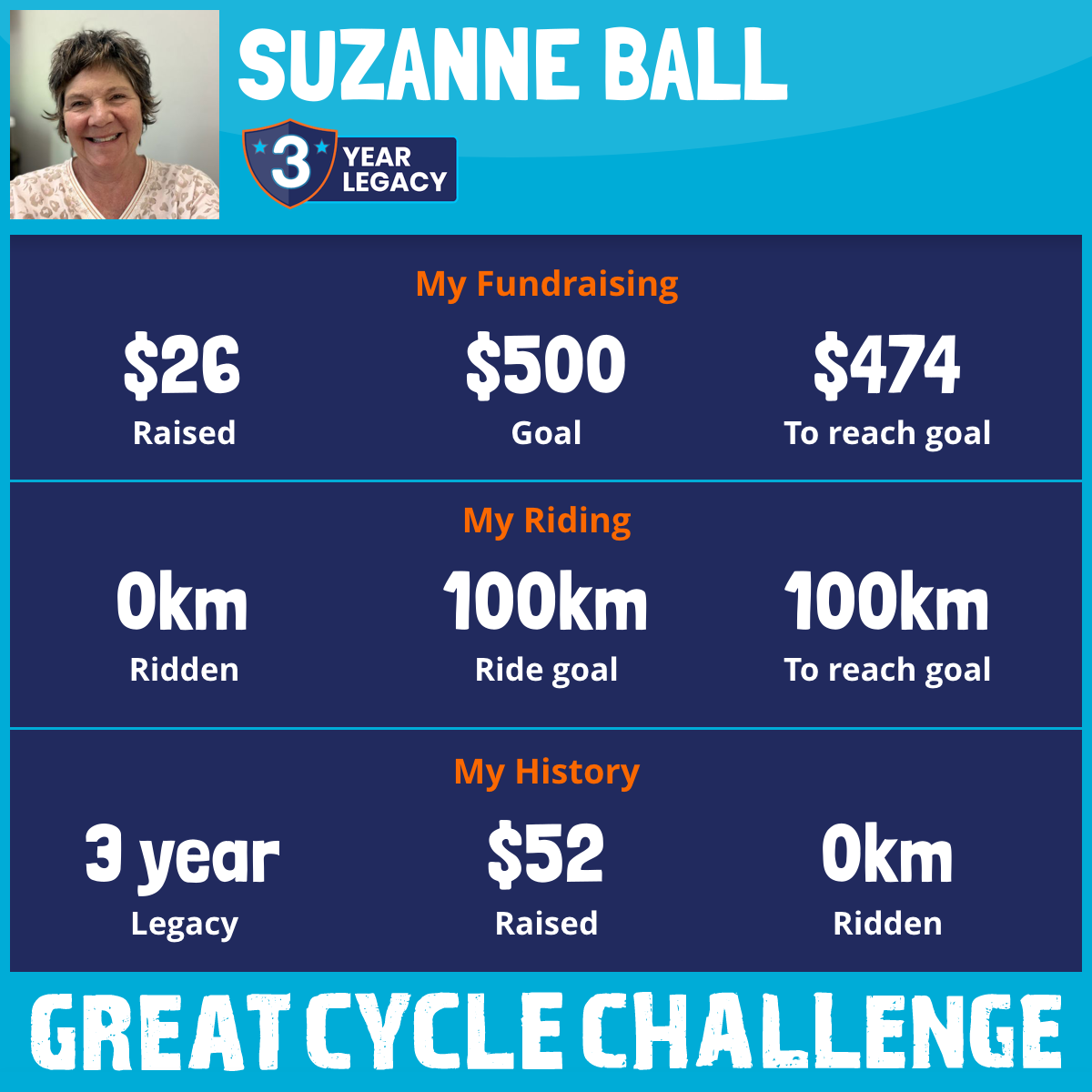 Rheta Steer Keep those wheels rollin' for the kids, Suzanne! Way to go!