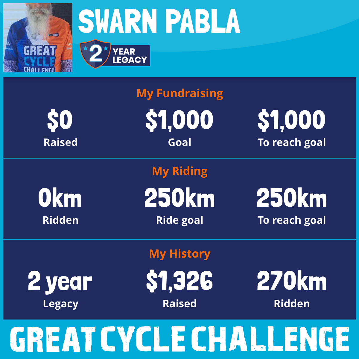 270 km Ridden$1,326 Raised2024