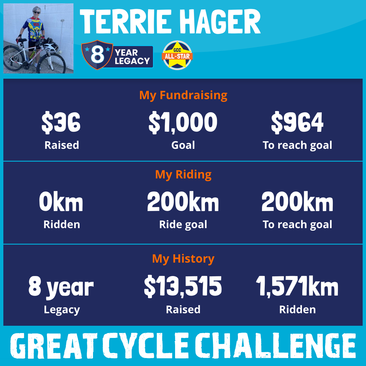 203 km Ridden$2,087 Raised2026