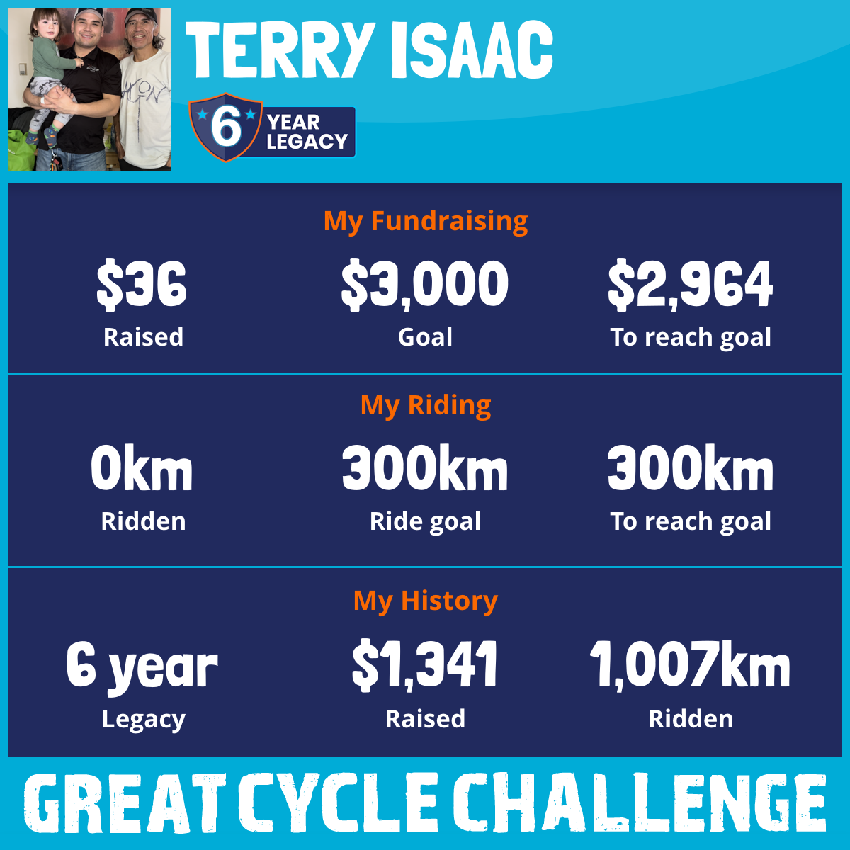 I am riding 300 km in memory of my son, Hunter (Son) & Robert (Father-in-law). Please sponsor me and support my challenge to fight kids' cancer and save little lives.