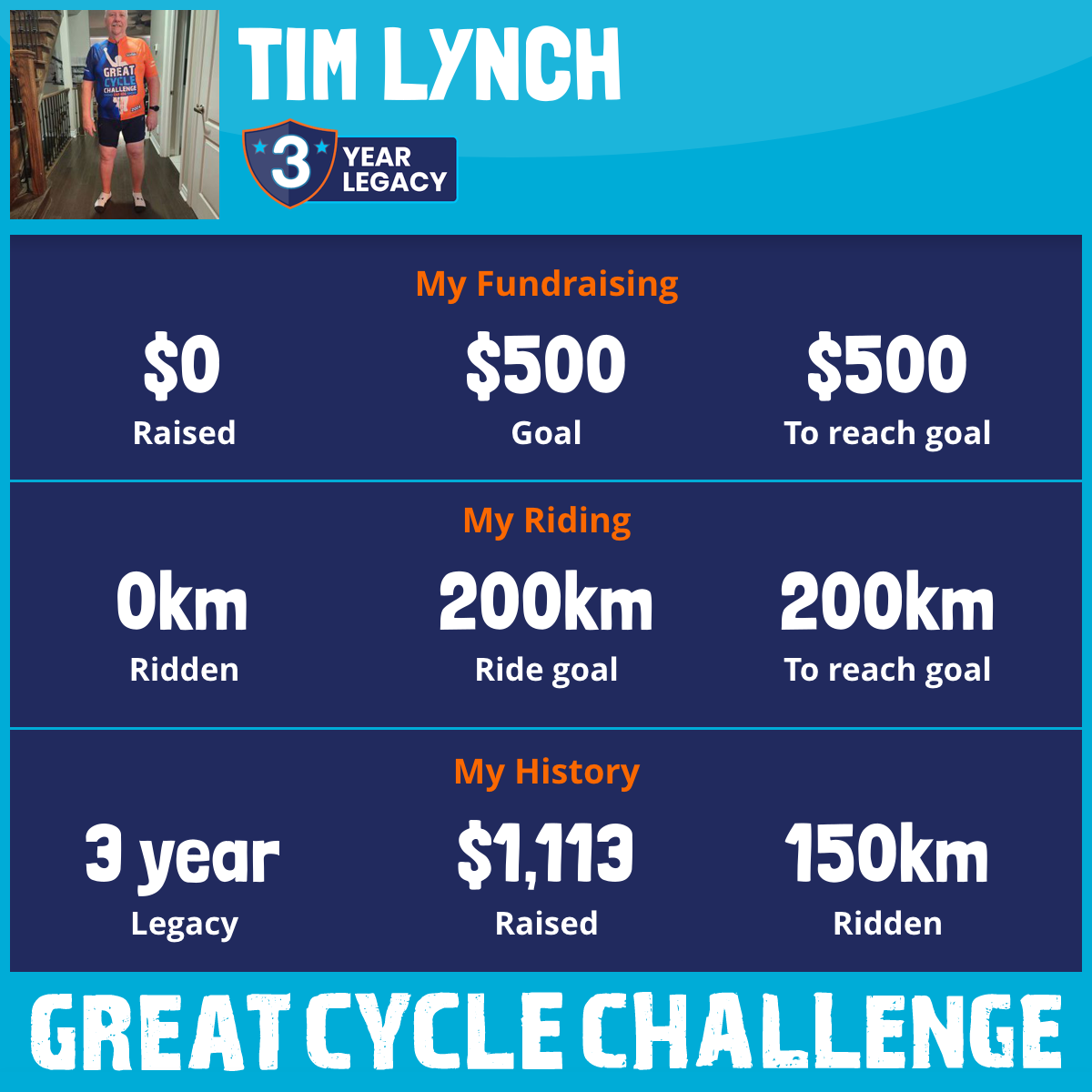 This year I am riding with Cancer as I was diagnosed in December 2024, I have committed to 230km but I plan to do more than that.