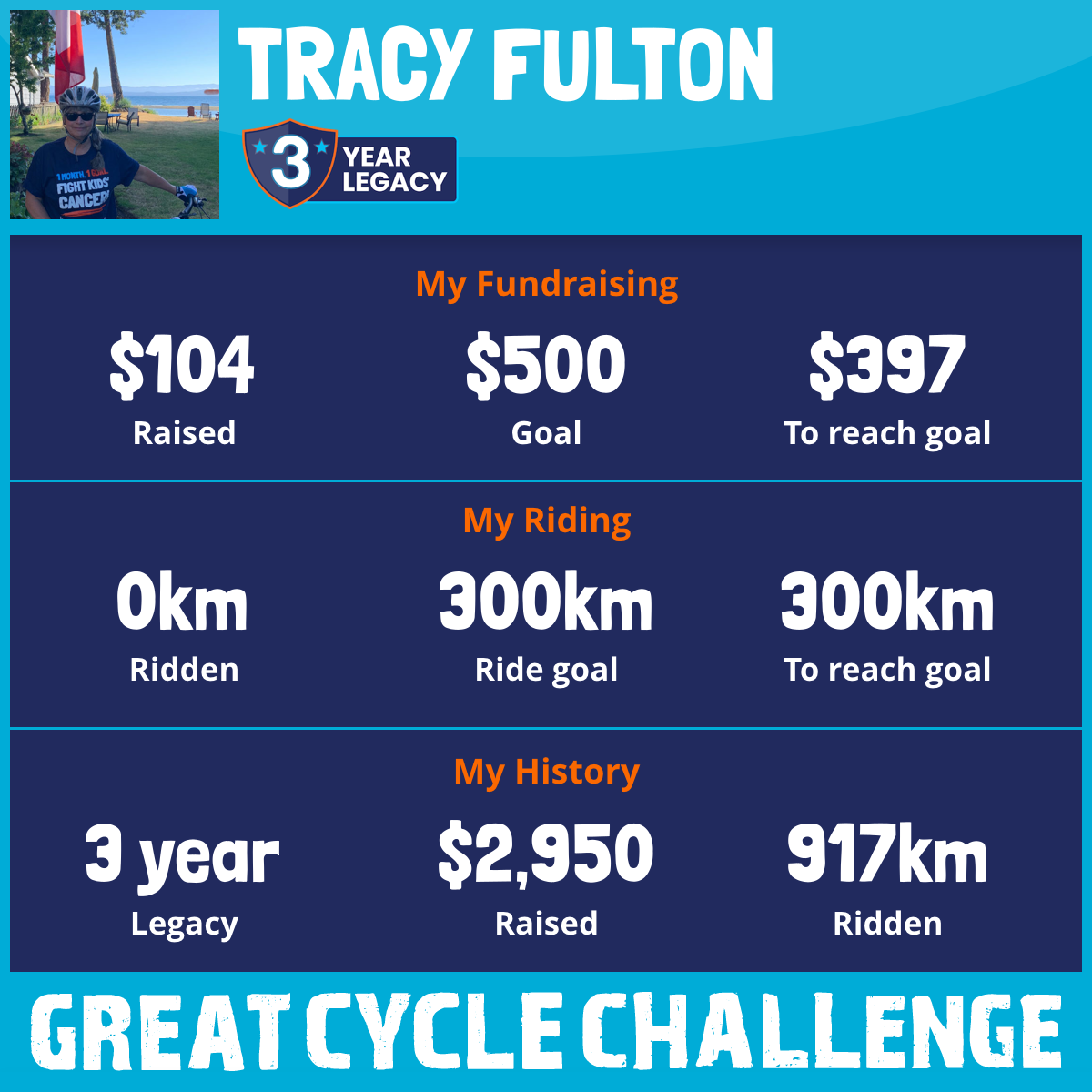 This August, I am taking part again, for my third year, in the Great Cycle Challenge to fight kids' cancer.